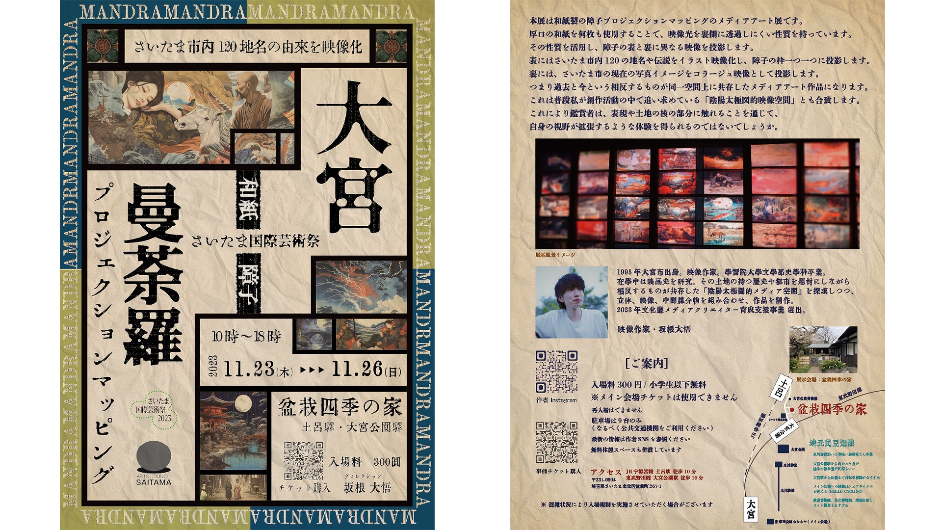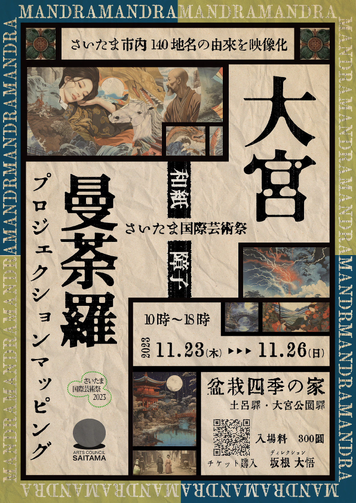 ※本チケットはさいたま国際芸術祭のメイン会場・チケットではありません。「大宮曼荼羅」専用のチケットになります。メイン会場のパスポートは本展示ではご使用になれません。またメイン会場の作品をご鑑賞の際は別途料金が必要となりますのでご注意ください。※ご購入後の変更・キャンセルはいたしかねます。