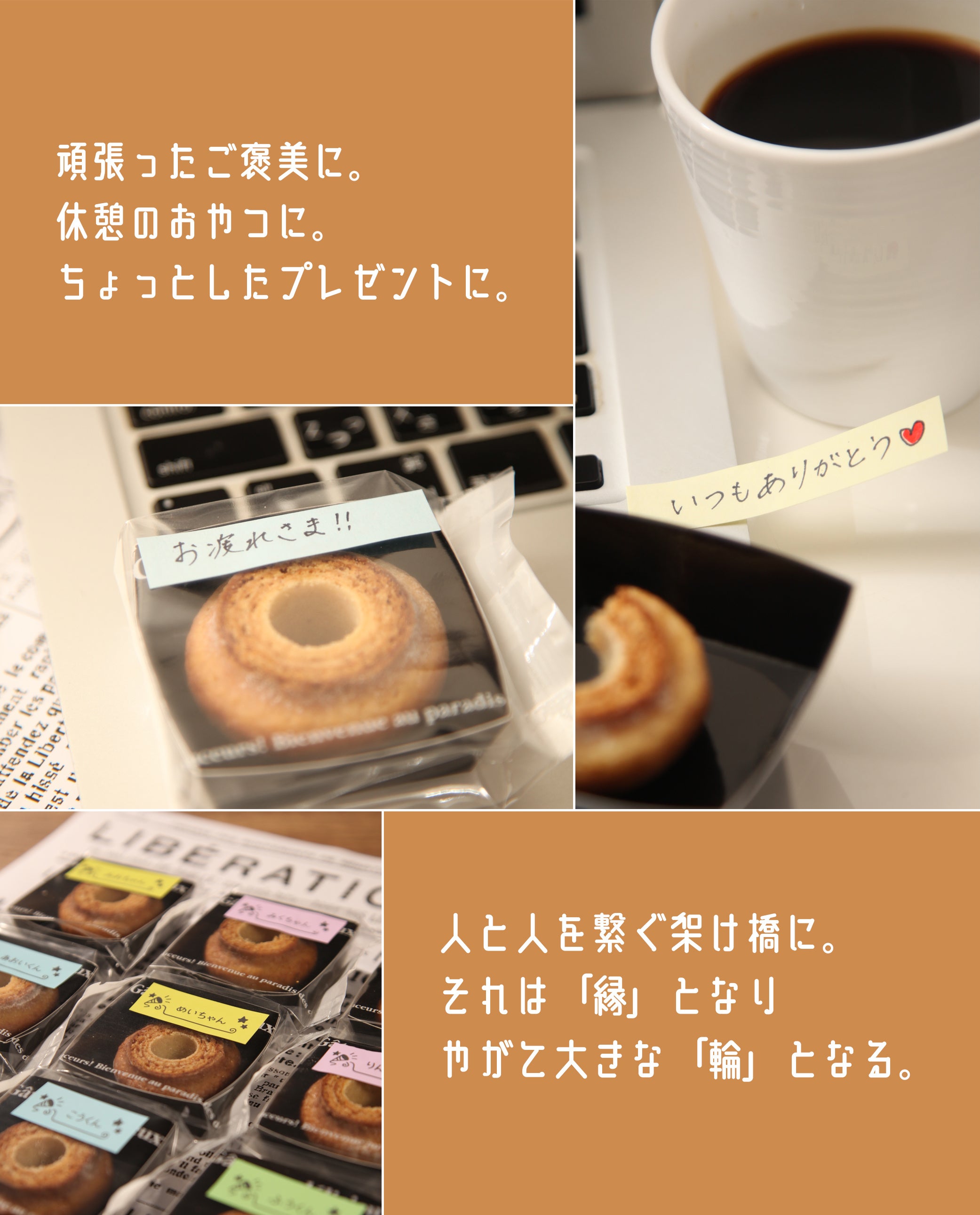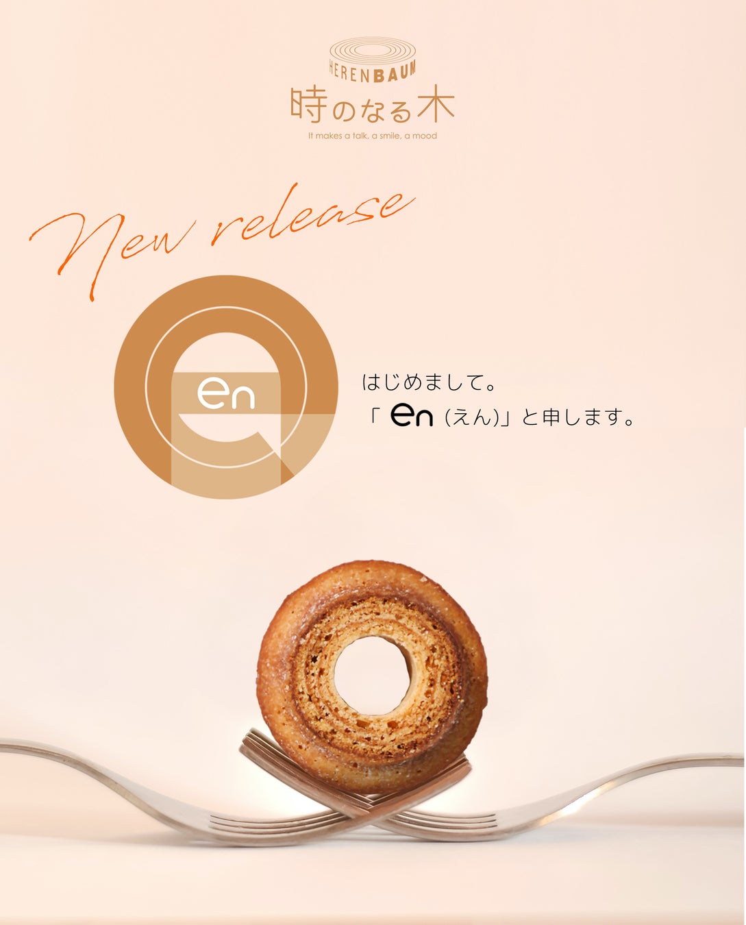 例えば職場や学校で、個包装のチョコや飴などを配る感覚でバウムクーヘンをシェアしたり、短い休憩に一口で食べれてリフレッシュできたりなど、手軽に楽しめシェア出来てしまう優れバウム! バウムクーヘンをもっと沢山の人に様々なシーンにご利用頂きたいという思いから、今回のバウムクーヘンが生まれました。この一品は、人と人との「縁」を大切にした、心温まる物語を持つスイーツです。バウムクーヘンをきっかけに、人と人との「縁 (en) 」 が生まれ、様々な「縁」が人と人を繋ぎ大きな 「輪」 となるような意味合いを込めてこのミニミニバウムを 「en」 とSNSでの公募で名付づけられました。