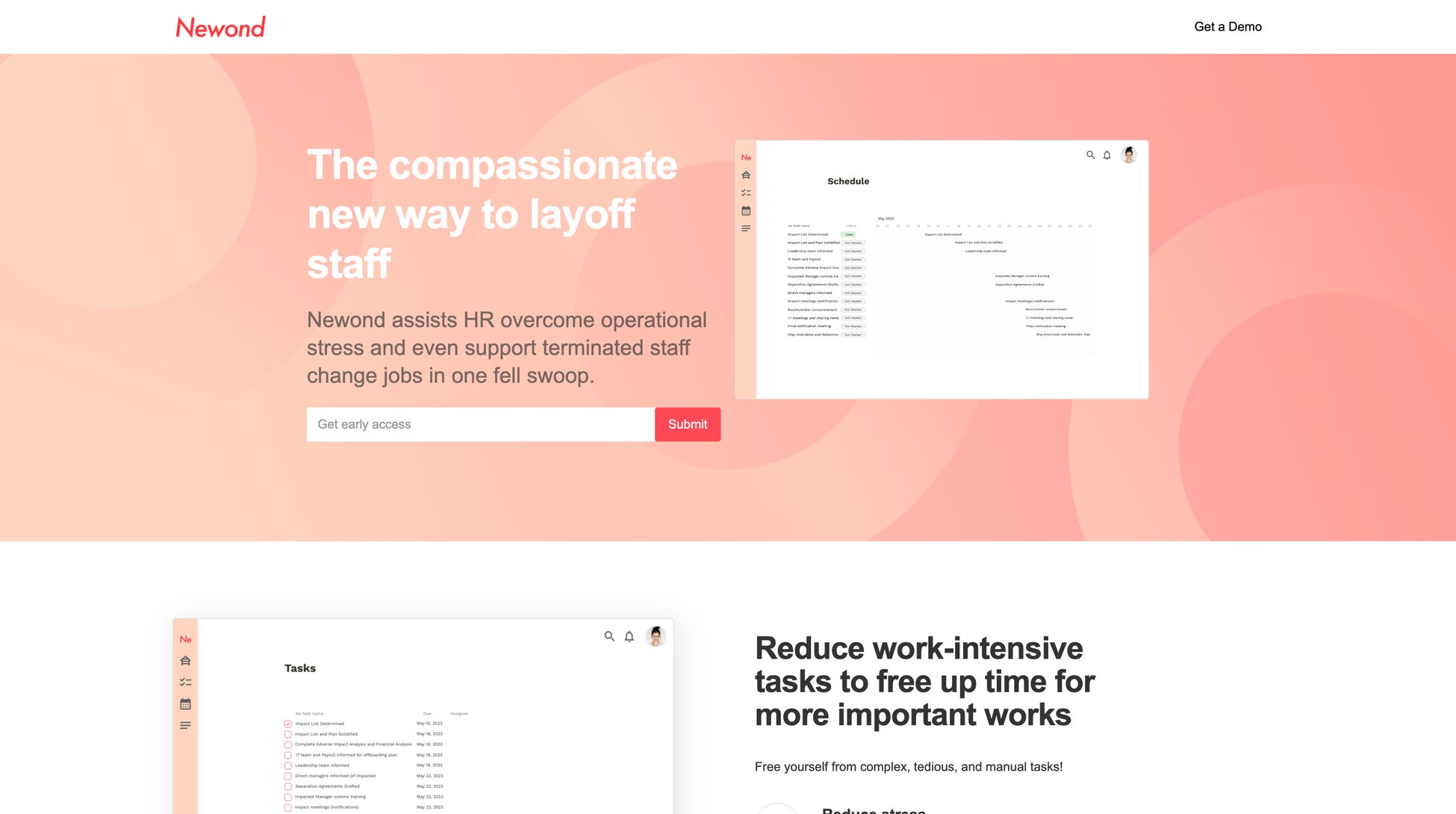 レイオフ時のバックオフィス業務を支援する「Newond」