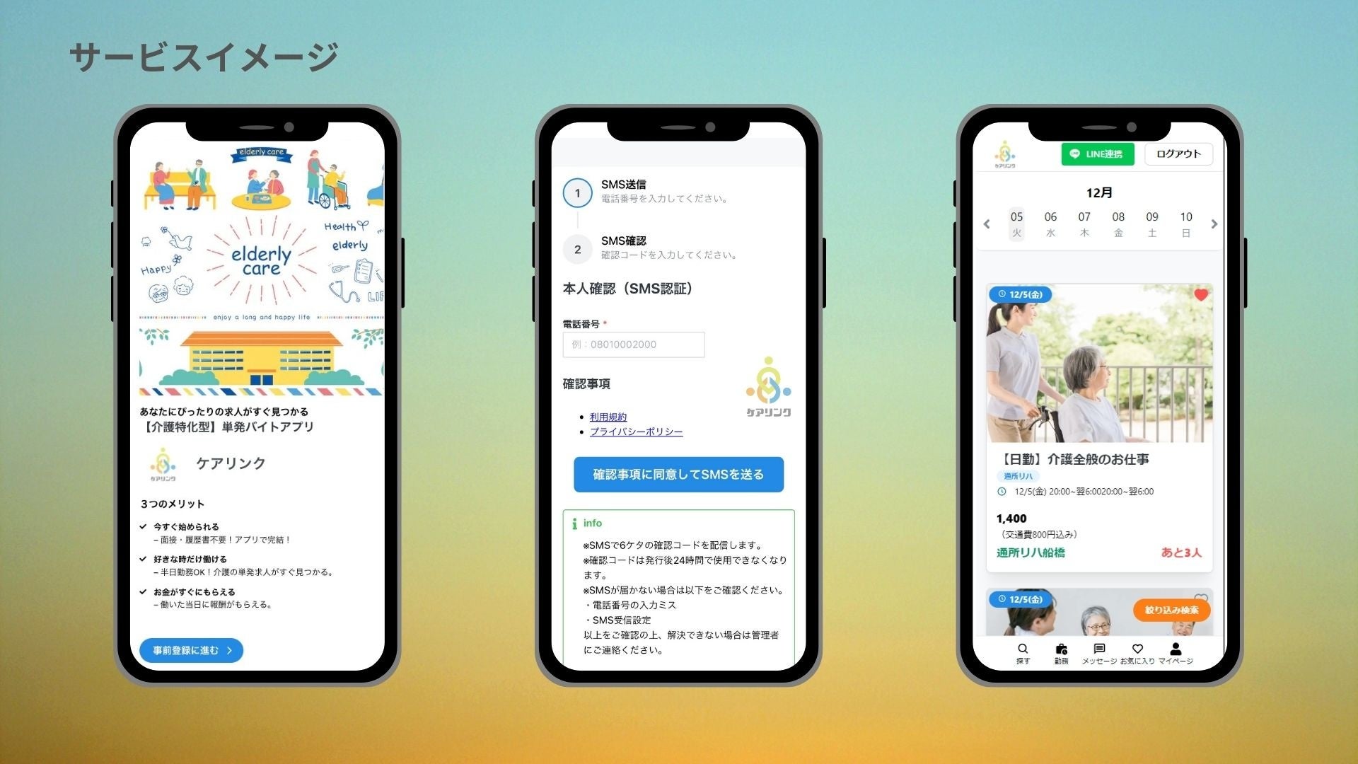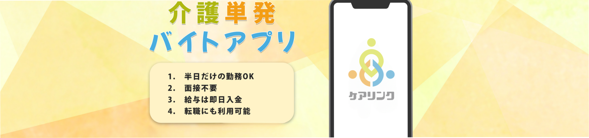 ケアリンクは人手不足の介護施設と働きたい人を結ぶ、「介護特化型」単発アルバイトマッチングサービスです。