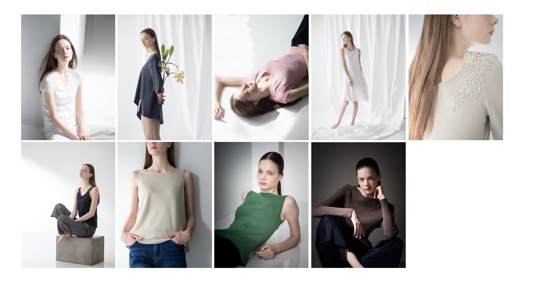 デビューラインナップは、カットソー・ニットトップスが全9アイテム。 柔らかい肌あたりでしっとりと潤いを感じる上質なカットソーは、リラック感のあるゆったりとしたシルエット で使い勝手のよいベーシックな4色のカラーで展開。身体に合わせてゲージを変えた立体的なデザインのニット は、ベーシックカラーからコーディネートの主役になるパステル調のカラーまで全9色で展開しています。