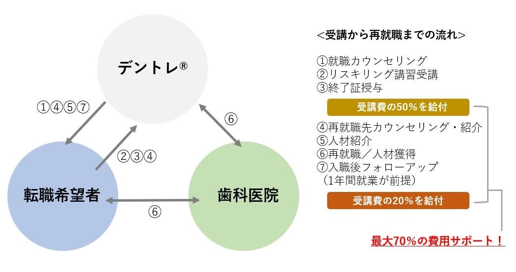 経済産業省主催「リスキリングを通じたキャリアアップ支援事業」としてデントレ®が、歯科業界初の認定講座に◎転職希望者に対して最大70%の講座費用サポートを行います。