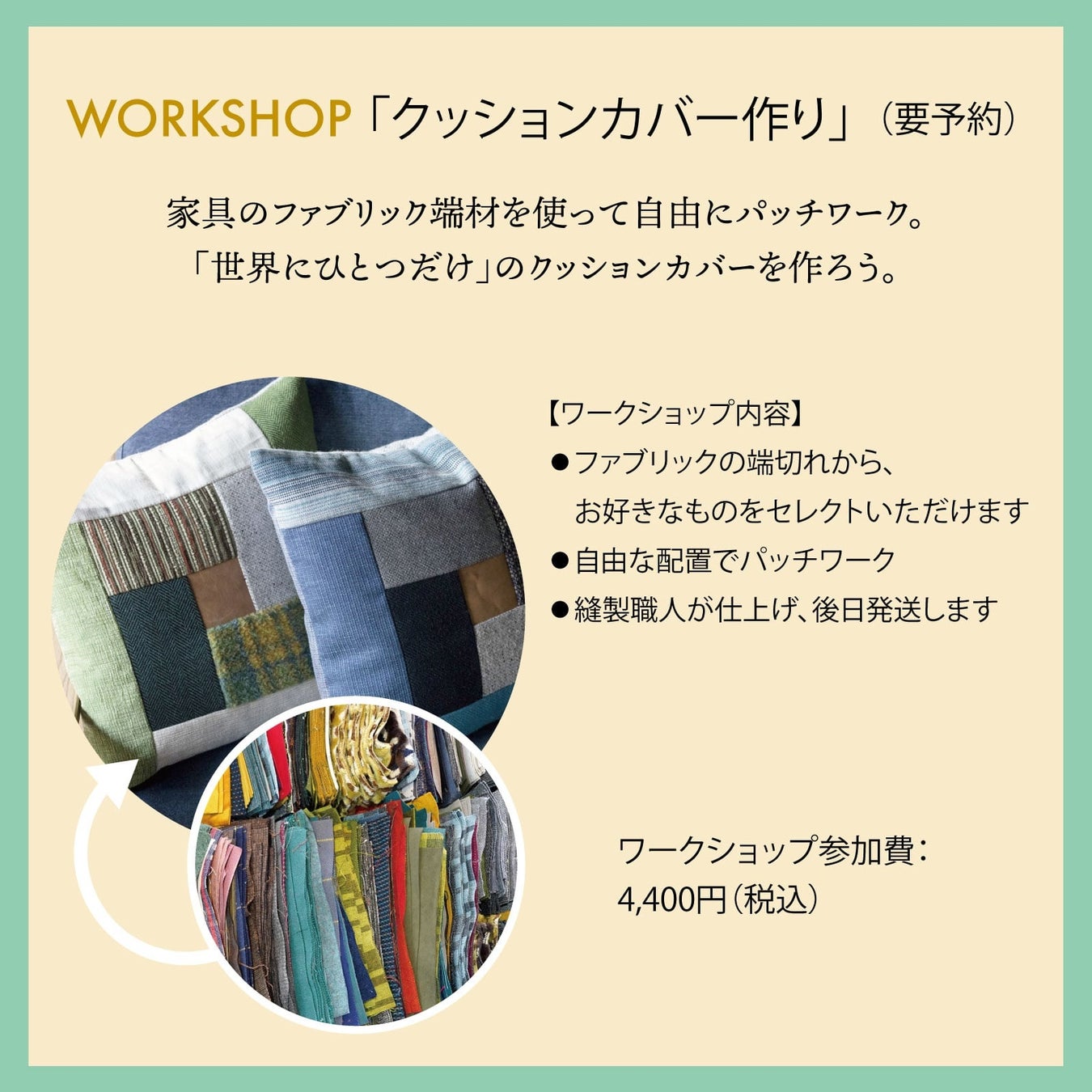ワークショップ: 家具の端材を使ったオリジナルクッションカバー作り体験。世界にひとつだけのアイテムを作ってみませんか?