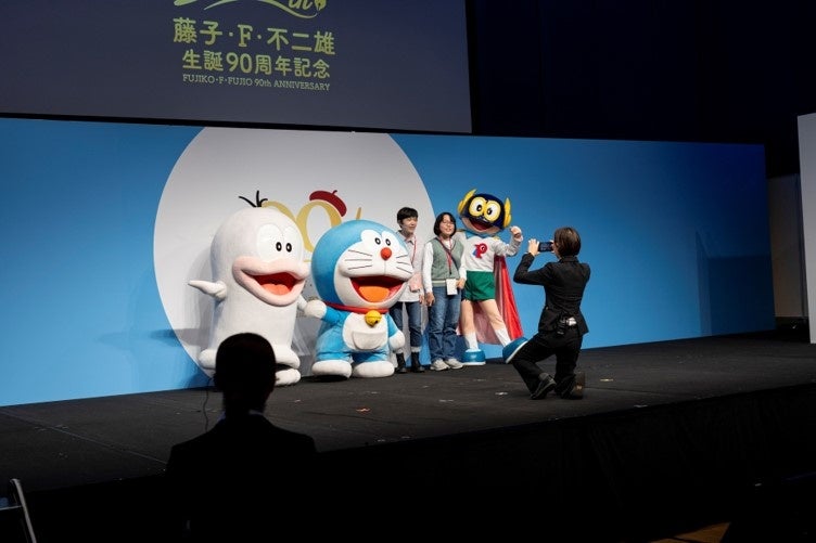 ドラえもんたちと一緒に集まったファンとの記念撮影!「藤子・F・不二雄 生誕90周年 企画発表会」開催