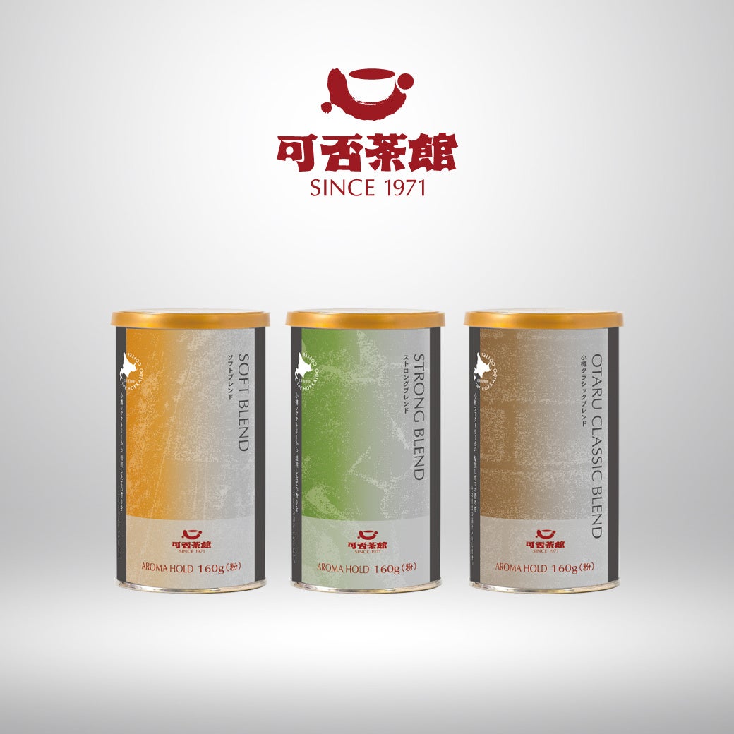 アロマホールド缶(3種):ソフトブレンド、ストロングブレンド、小樽クラシックブレンド
