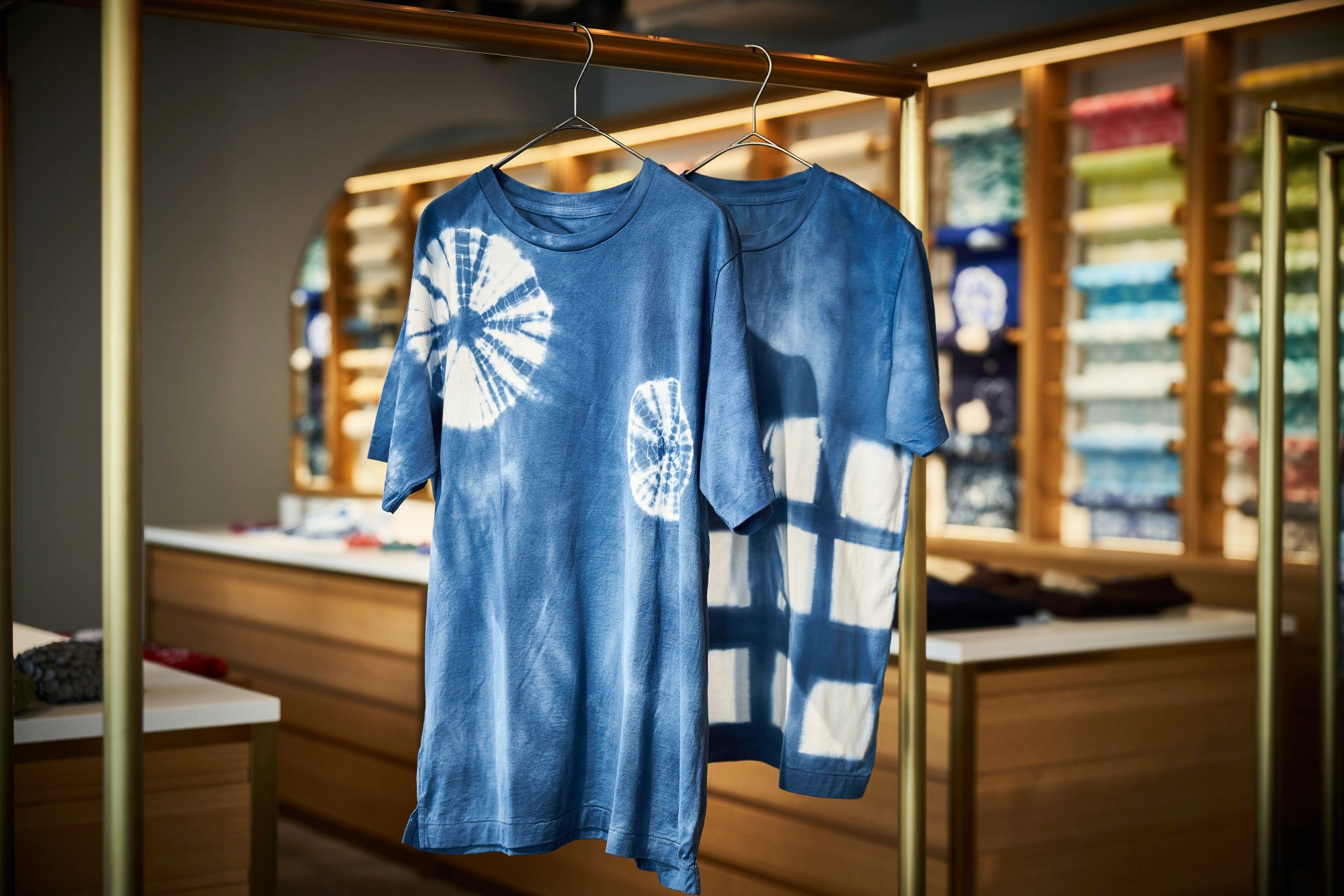 In the studio separated by glass next to the shop, visitors can actually experience dyeing. You can also observe participants enjoying themselves making their own dyes. In the future, we plan on using this space to hold workshops in which everyday people can participate. We have prepared hands-on experience programs for tie-dyeing handkerchiefs, tote bags, and t-shirts so that participants can experience creating things with their own hands, which is the starting point of creation. The work is not difficult and can be experienced in simple steps, but each item will have a completely different finish depending on the level of force and how much it is soaked. Experience the surprise at seeing a finish you did not expect when undoing and spreading open the tied threads. Because the process is simple, participants can utilize different ideas in this workshop. Through this workshop, we deliver the joy and possibilities of making things.