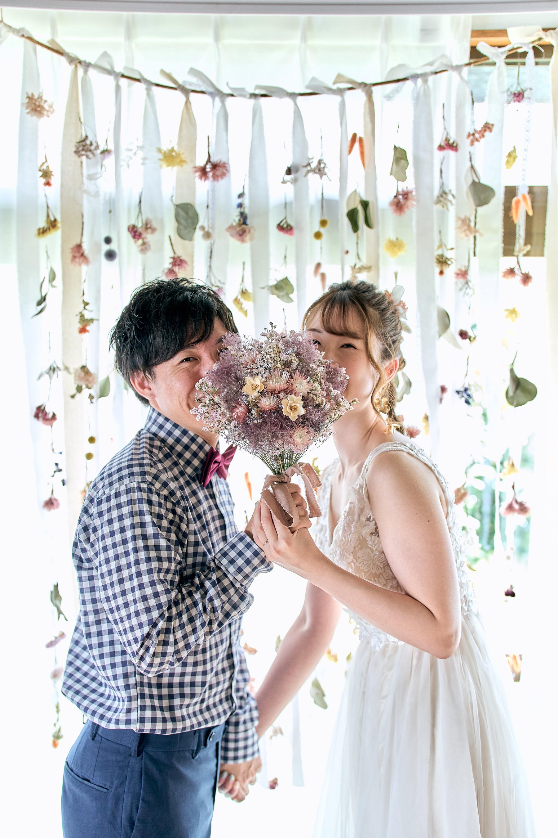 ウェディングフォト専門 セルフ写真館を運営するINAI WEDDING( https://inaiwedding.jp )とコラボし、今秋から、ウェディング専門セルフ写真館を本格スタートしました。実際にドライフラワーブーケを制作している木の温もり感じる作業台に、生花やドライフラワーが飾られ、高砂をイメージした素敵な空間となっています。