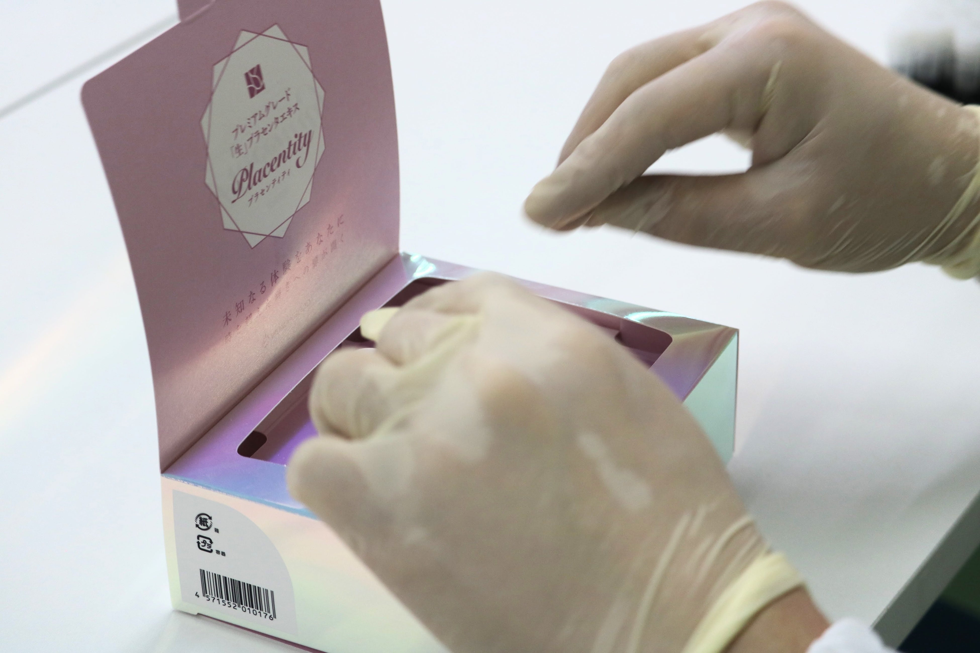原料となる胎盤は、専属契約した福岡県の提携牧場から直接配送、製造工程では職人の目で一つ一つ確認し、厳選された部位のみを使用。