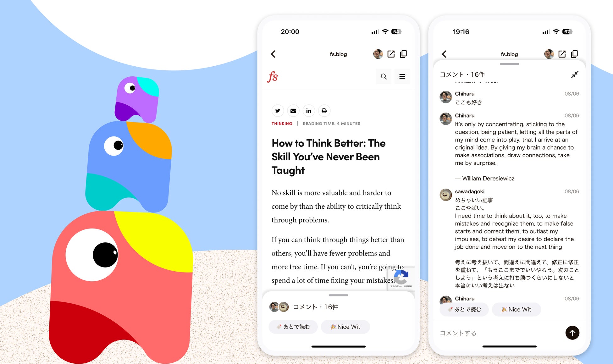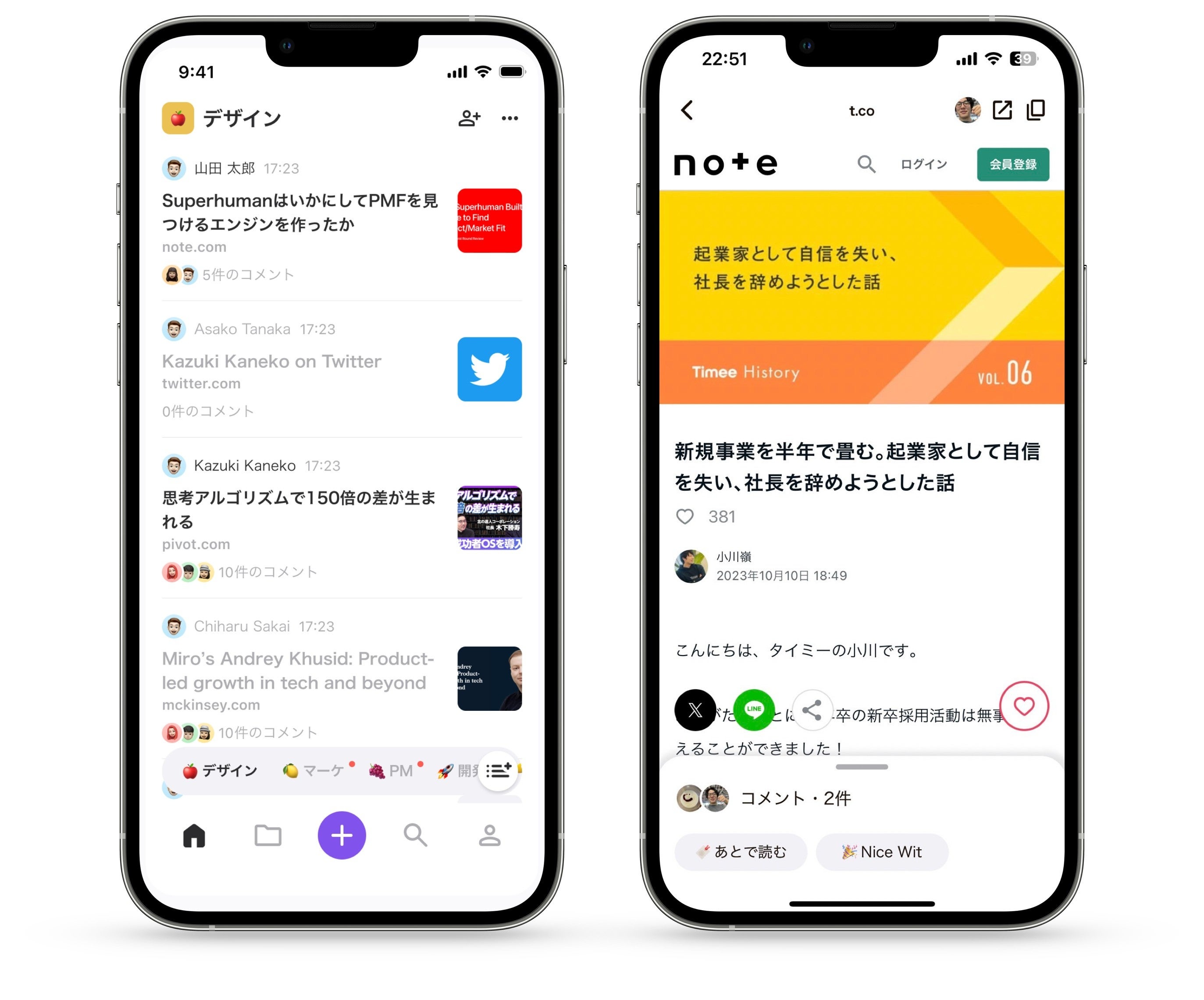 コメント欄にて自分がその記事から得た学びや思考のメモを残せたり、グループメンバーで会話を楽しむことができます。後から見返す時に自分が要点を理解しやすいように記録を残すことができます。