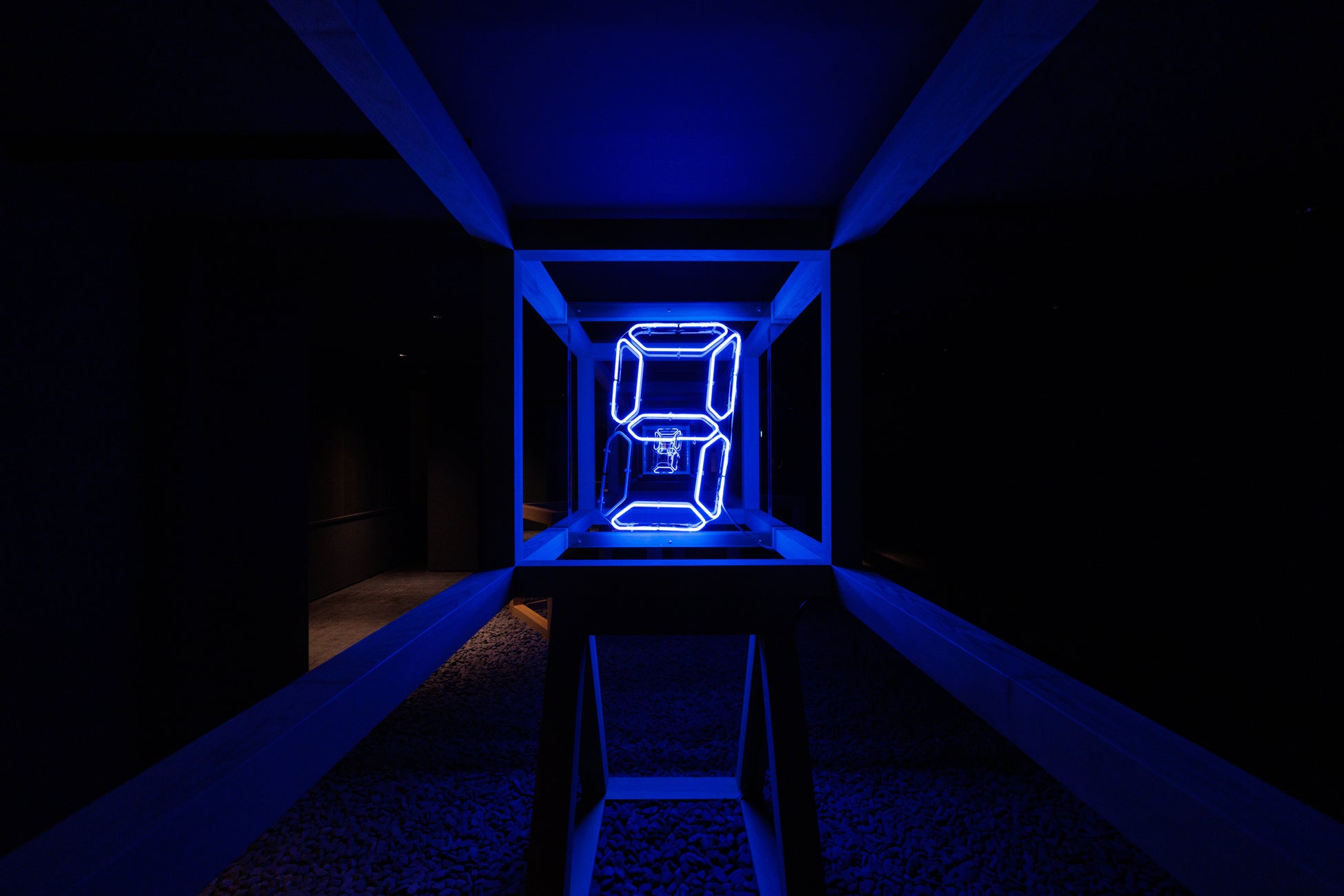 広大な空間にアートスペースと書庫を備えています。アートスペースには「ゼロの転位 Replacement of Zero」を展示。現代アーティスト宮島達男氏とべにや無何有設計者の建築家竹山聖氏による作品です。書庫には、ゼロ・無・空などをテーマにした哲学・数学・美術などに関する書籍が集められています。