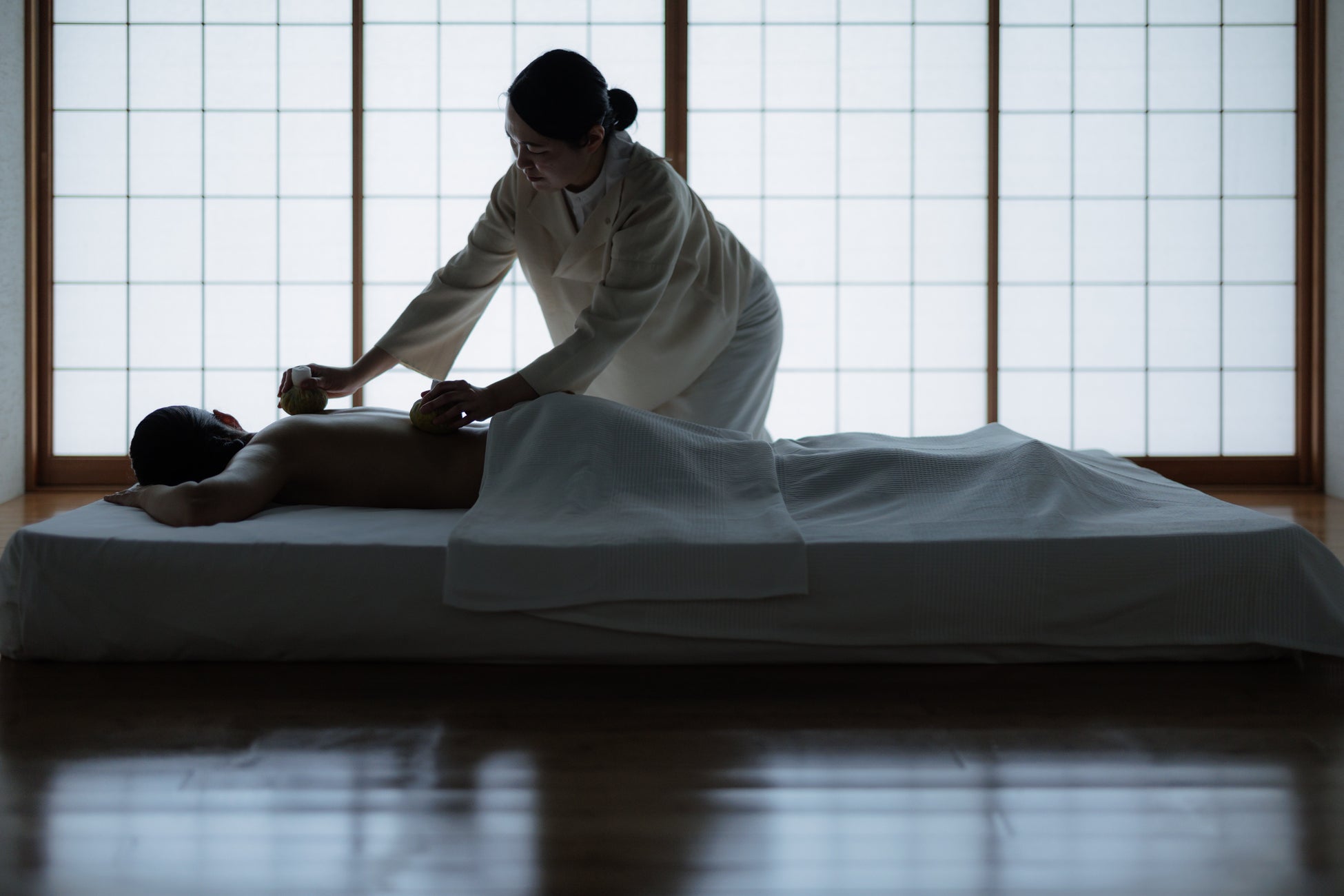 宿のスパ「円庭施術院」では、古来より僧侶が温泉の施浴と薬草の調合により人々を癒してきた山代温泉「薬師山」の伝統を受け継ぎ、中医師・幸井俊高氏が円庭施術院のために作成した薬草マトリックス「補捨流調」を用い、温泉と薬草を使った「薬師山トリートメント」で心身のケアを行っています。