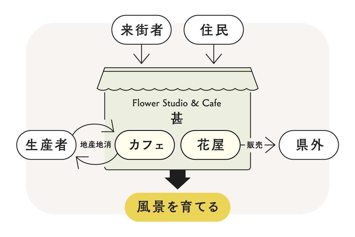 地元の多様な花を少しずつ、そして多くの種類を育て、提供していく予定です。美しい景観を楽しむだけでなく、「持続可能な風景を支える花屋」としての役割も果たせるのではないかと考えています。地域全体が連携し、魅力的な風景を共に築いていく未来に向けて、誠心誠意尽力して参ります。花の甚右エ門「Flower Studio & Cafe 甚 」のオープンに向けて、是非みなさまのお力をお貸しいただけたら幸いです。皆様の温かな応援を心よりお待ちしております。