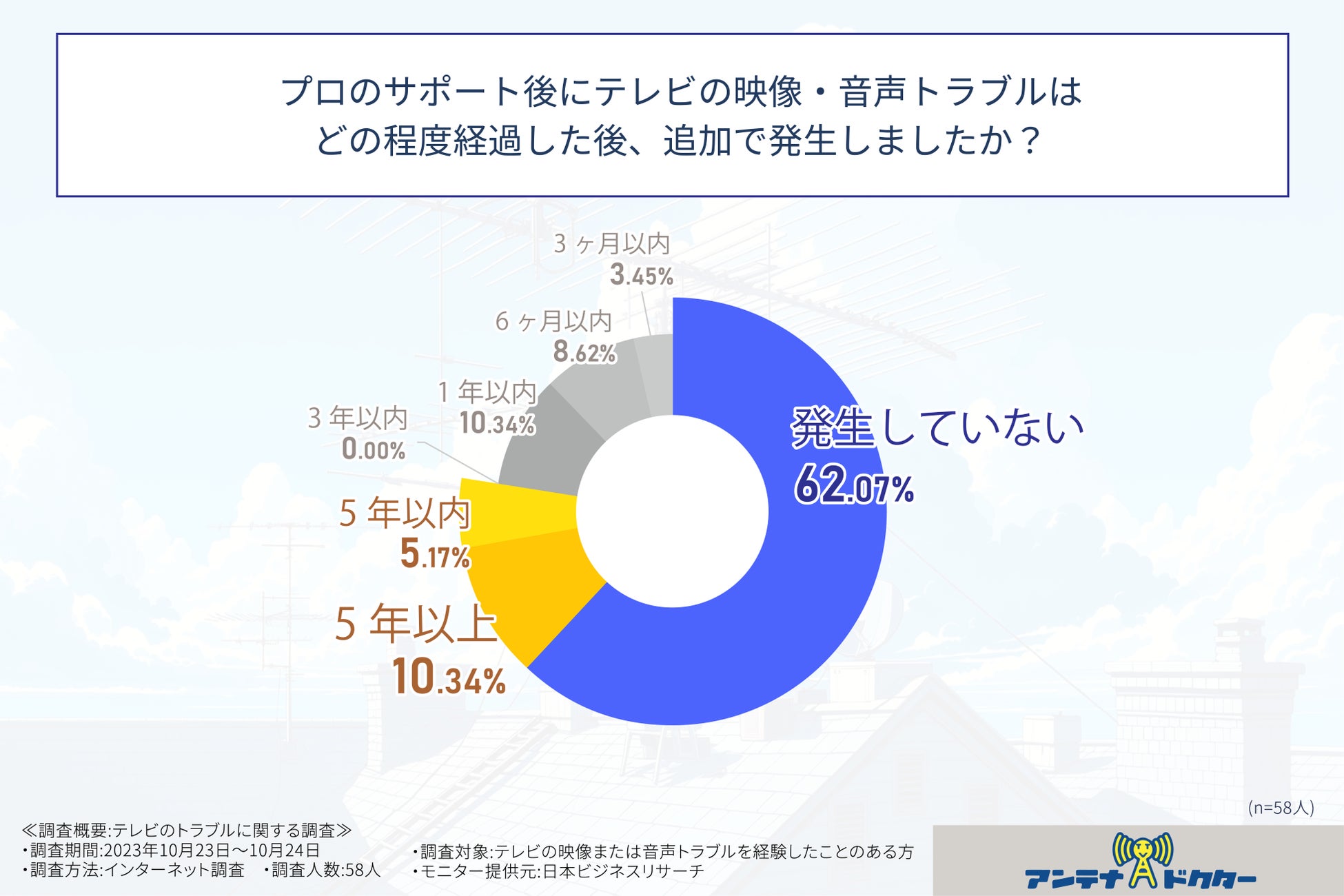 プロのサポートを受けた方については、約8割がその後3年以上トラブルが発生していない傾向にあり、プロに修理を依頼することがテレビトラブルの解決にとても有効な方法であると、調査結果から考えられます。