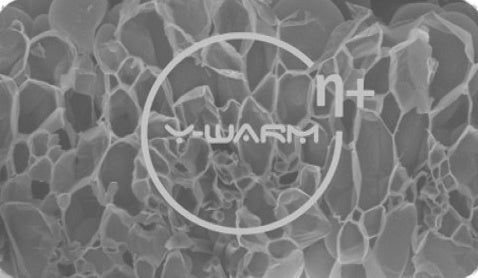 Y−Warmは、その隔壁の厚みは20−280 nm、孔径は30−190μm、95%以上の閉孔率及び96%以上の空隙率(ベースになる素材を除く)、EUの205種類の有害物質SVHC安全性試験に合格した、人類初の冬季服装保温応用に完全に適した断熱新素材です。また世界で初めて、防寒衣料に軽量で薄く保温性のある革命的な創造をもたらす事のできる素材でもあり、その技術は国際特許権を取得しています。