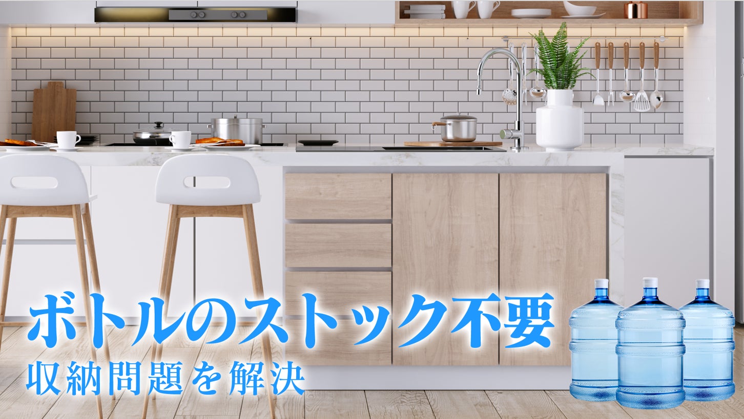 ⽔道直結式のため、お⽔がなくなる度にご⾃⾝で給⽔する⼿間や、ボトルの注⽂、重たいボトルの交換、ゴミ出しの⼿間、ボトルのストック場所も不要です。
