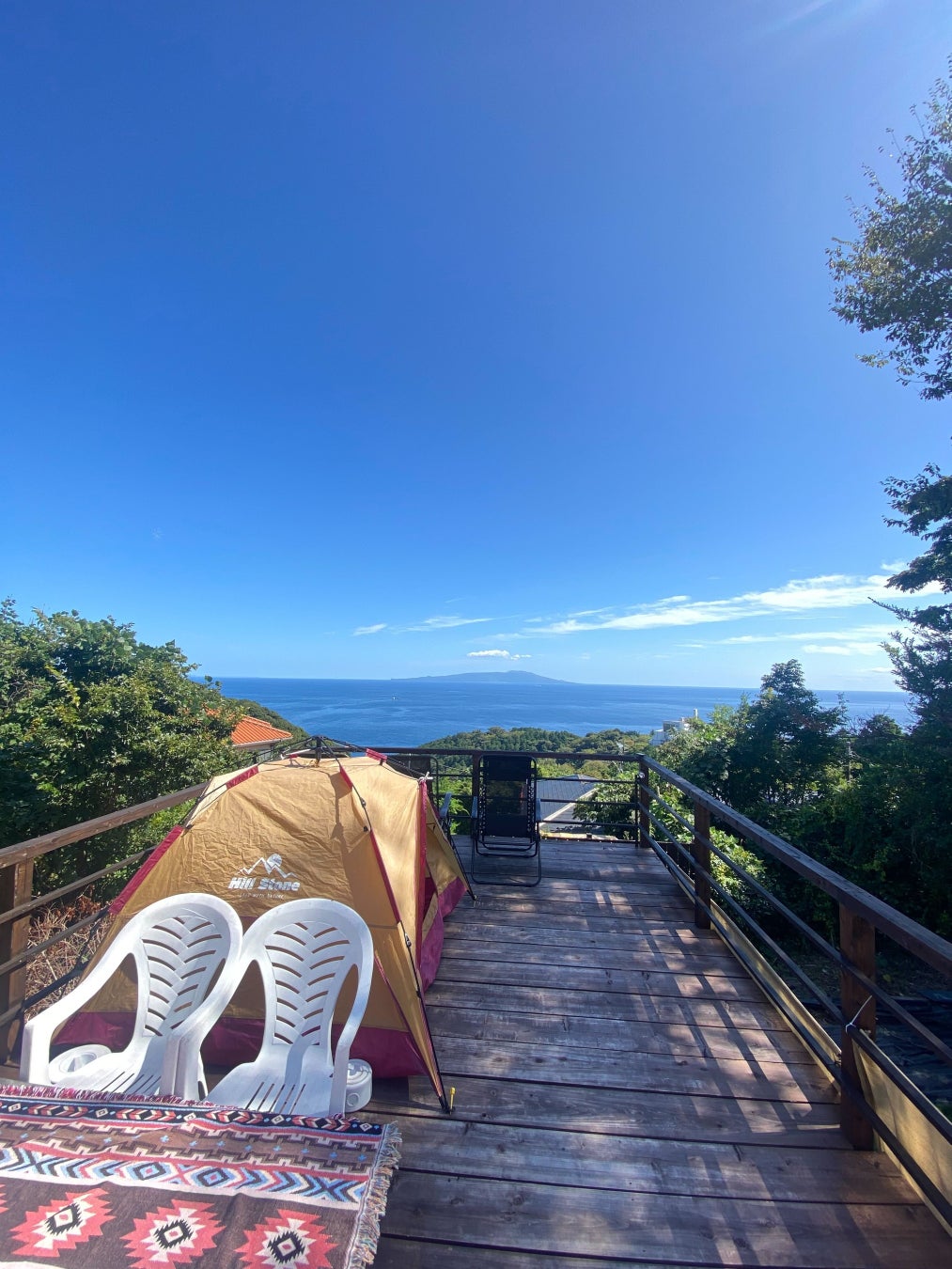 大島の絶景が望める最高の景色を有した施設です。フォレスト熱川の体験に壮大な景色を組み合わせることにより深い体験を提供します。チェックイン時には大島の開けた絶景を望み、夜はサウナで整いながら、圧巻の星空を見ることが出来ます。さらに翌朝には日の出を見ることができます。朝日を浴びながらヨガや軽い運動を行うと最高の気分になります。全ての時間帯で違った楽しみ方が可能な体験型グランピング施設です。