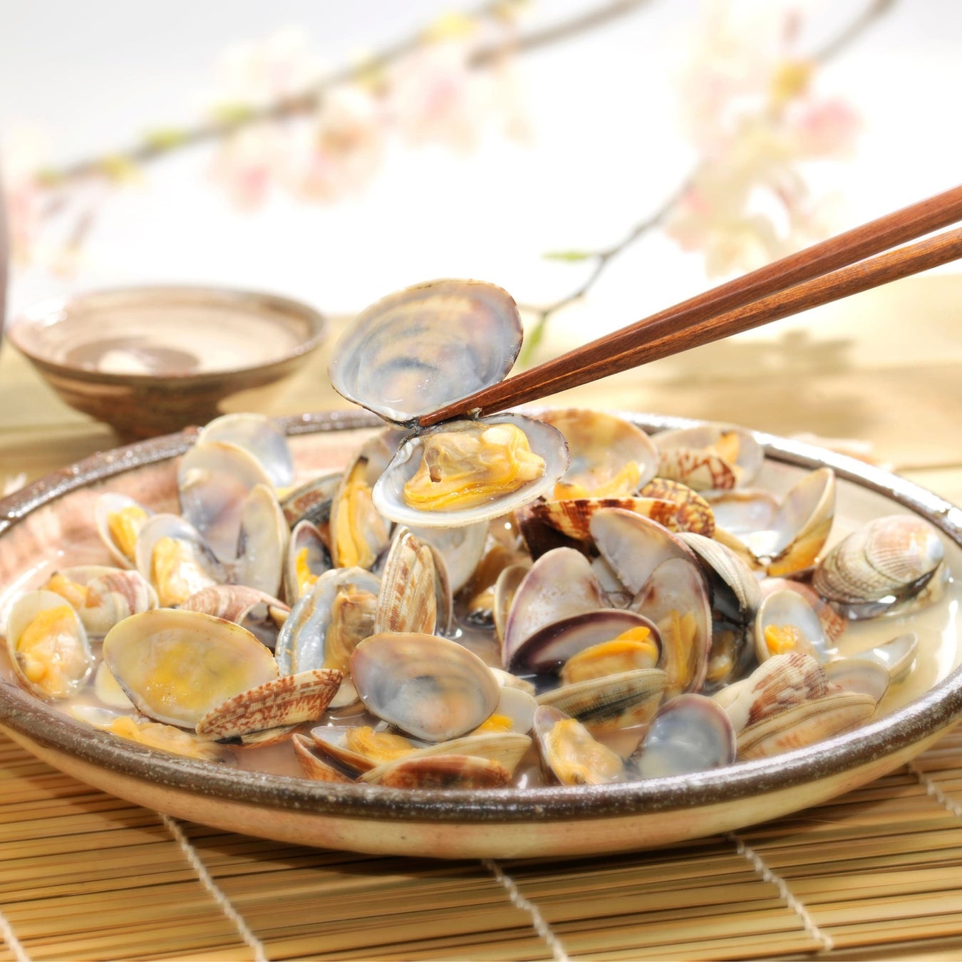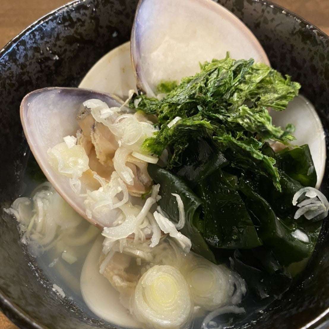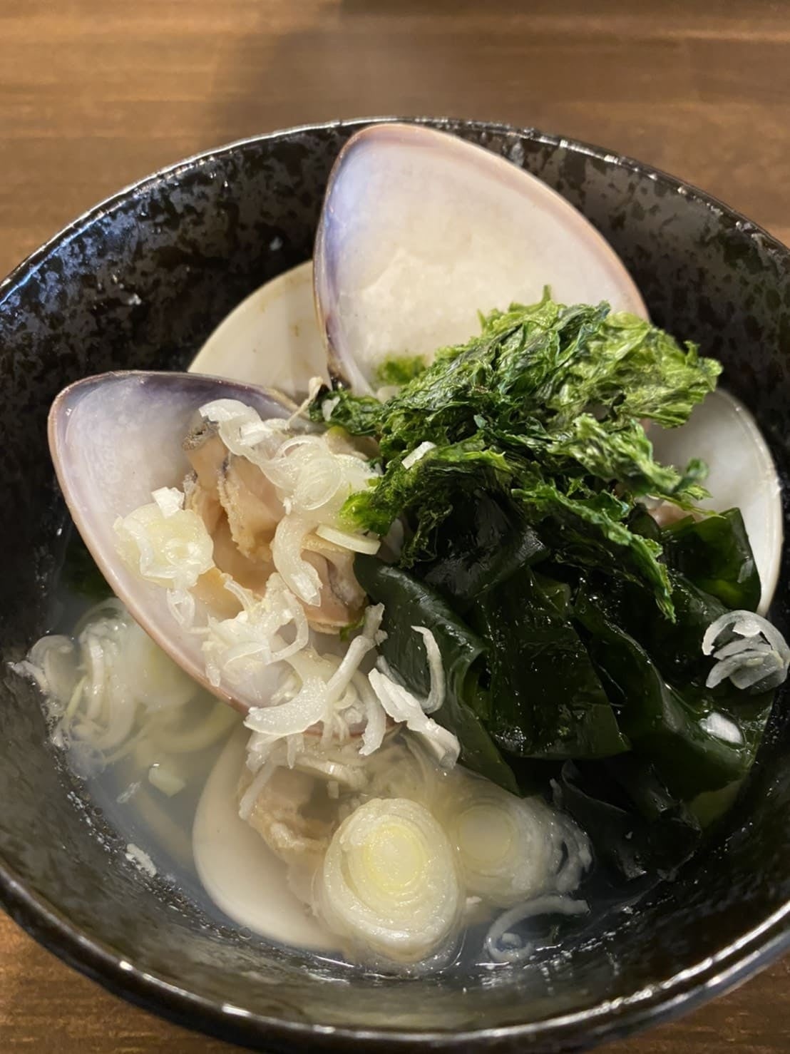 はまぐりラーメン 肉巻きおにぎり 白はまぐりの地酒蒸し かに汁