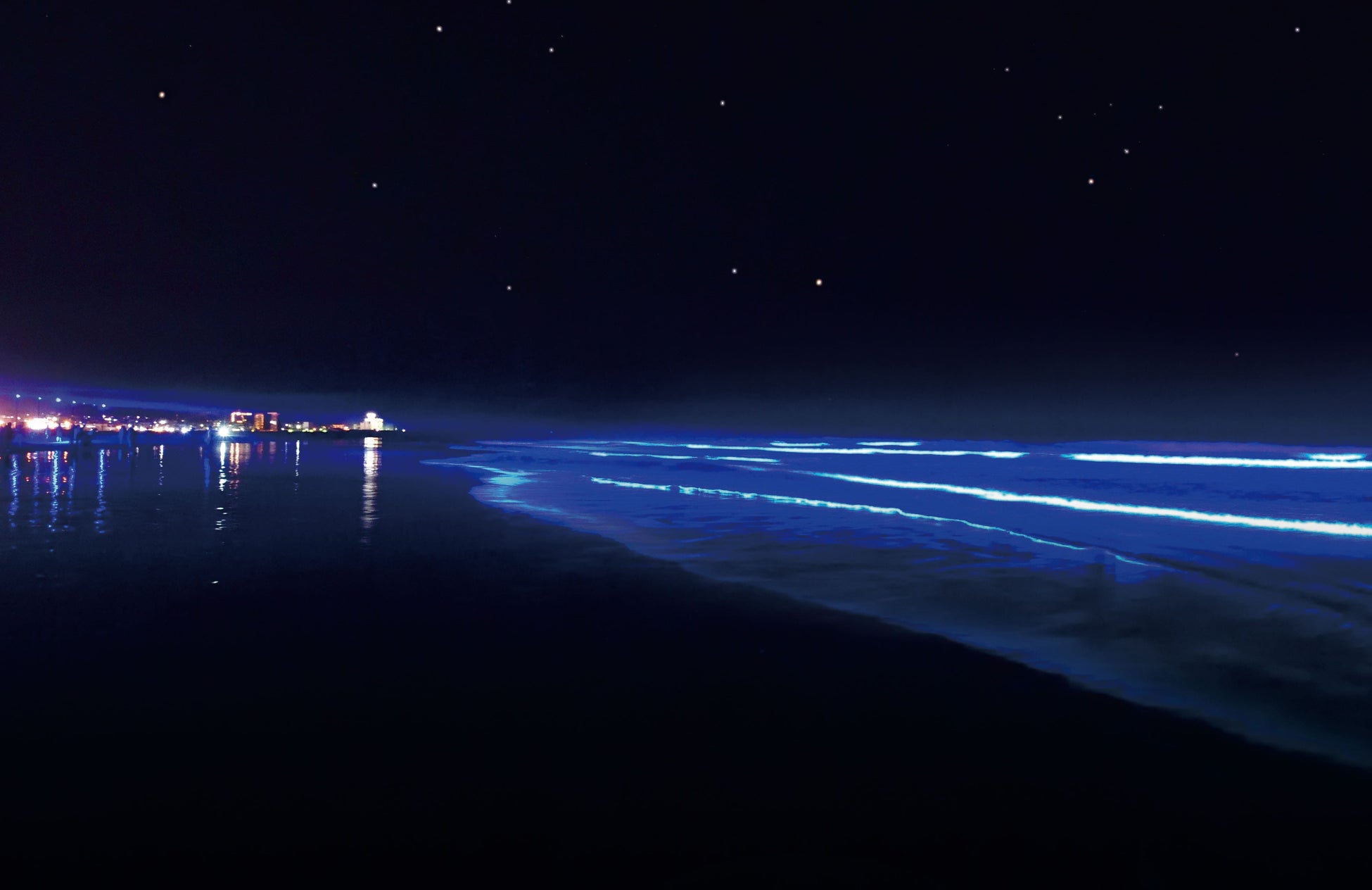 砕けた白波が鮮やかな青い光に幻想的に輝く、波をライトアップするイルミネーションイベントです。