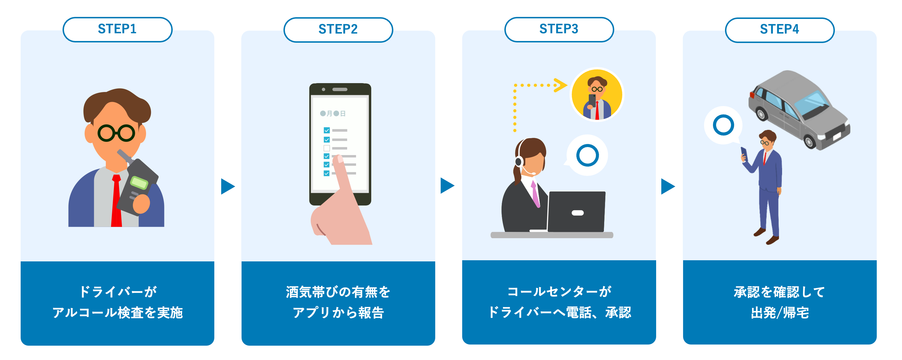 現在、道路交通法施行規則が改正され、安全運転管理者の業務が拡大しており、アルコールチェック義務化の内容として「運転前後の酒気帯びの有無を目視/電話等で確認すること」が必要となっております。また、2023年12月に施行されるアルコール検知器を用いたアルコールチェックの義務化では電話や目視による運転者の状態確認に加え、アルコール検知器による数値の測定が義務化されます。しかし、夜間や早朝など不規則な勤務時間や休日出勤がある企業では運転の度に発生する確認業務に安全運転管理者のみで対応するのは困難であり、各企業が対応に追われています。「アルレポ」とアルコールチェック代行サービスとの連携はそうした不規則なアルコールチェック業務の運用の際に課題となる「時間外対応のコスト」「安全運転管理者の負担」の解決をサポートいたします。