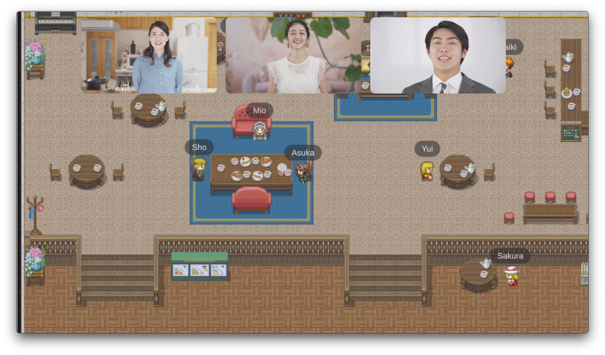 ピクセルトークでは、自身のアバターを操作して、他のメンバーのアバターと近づくことにより自動的にビデオ通話を行うことができます。
