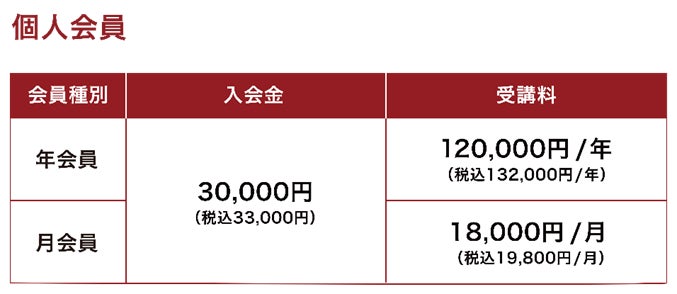 ① 教育理念に基づいた会員限定公開のオンライン講座が月額1万円から常に見放題。