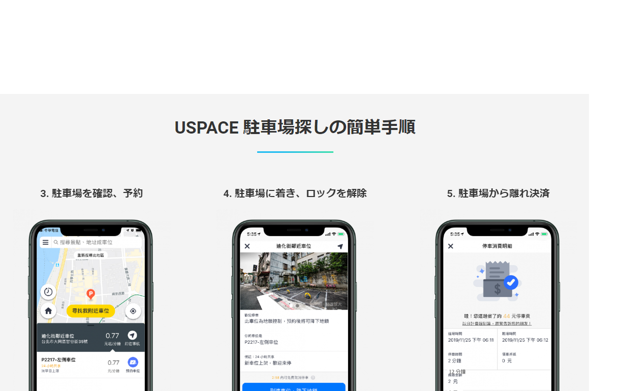 オーナーはクレジット決済、電子マネー決済でご対応をすることにより精算機の設置が不要で防犯対策に特化をしていること、ゲートの設置も不要となりますので、故障や破損事故のリスクにも対応しております。初期投資が安価であり、機材も30分で設置できることから、様々な⽴地で空地を有効かつスピーディーに土地活用が開始できます。さらにオーナー⽤アプリひとつで運用時間や価格の設定変更、予約や収益の管理ができます。台湾では本サービスが⼤都市の駐⾞場不⾜を解決するツールとして急速に浸透しつつあります。