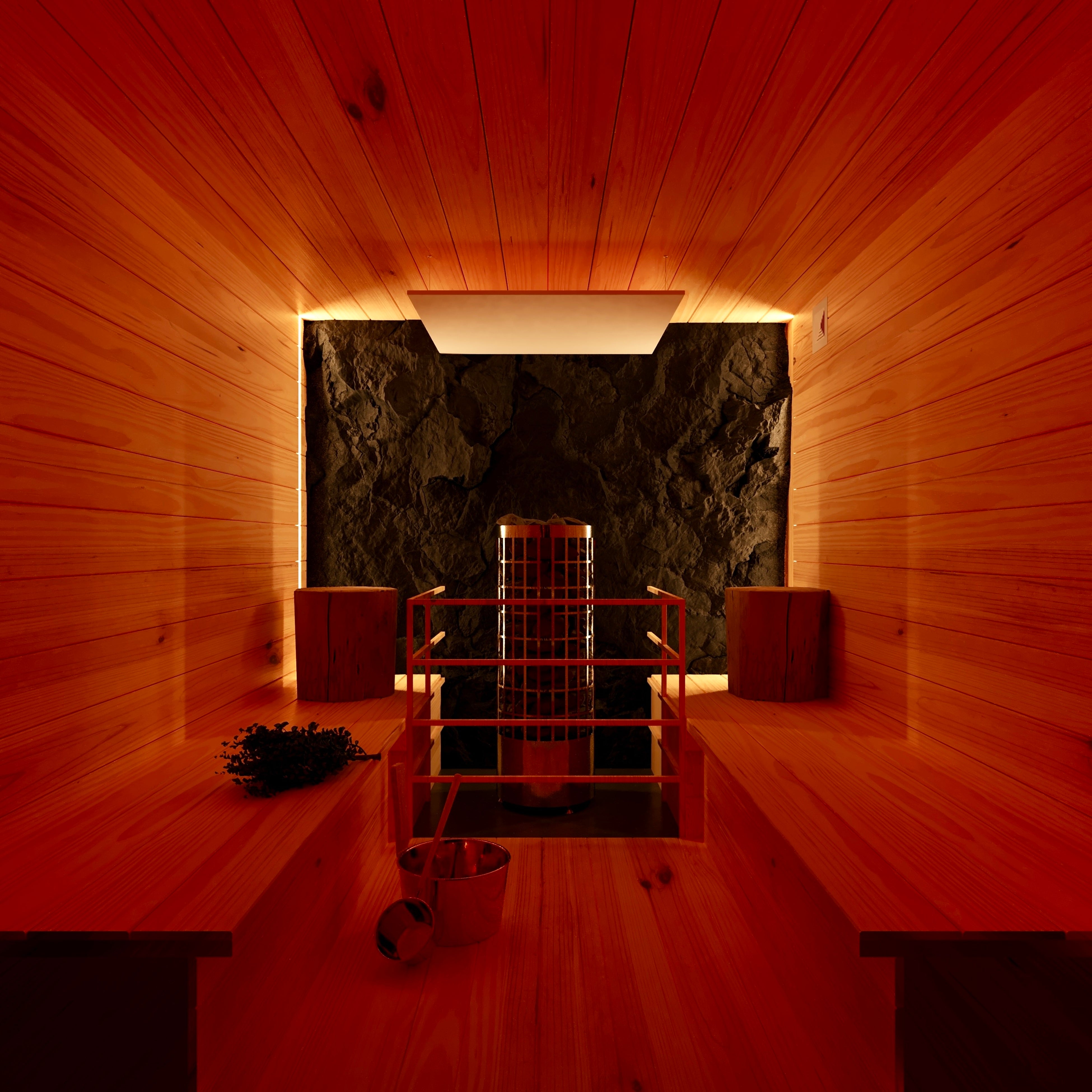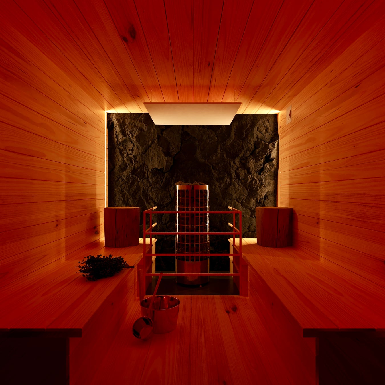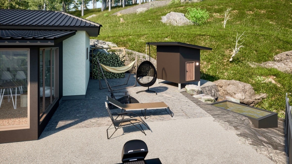 地元の鏑材(杉、桧)と荒船の岩で作られたサウナ小屋。