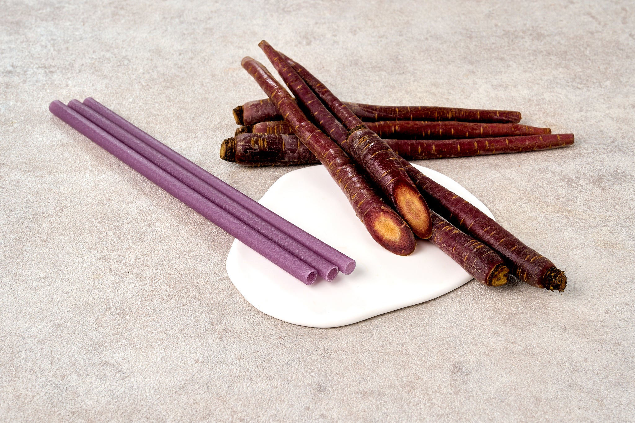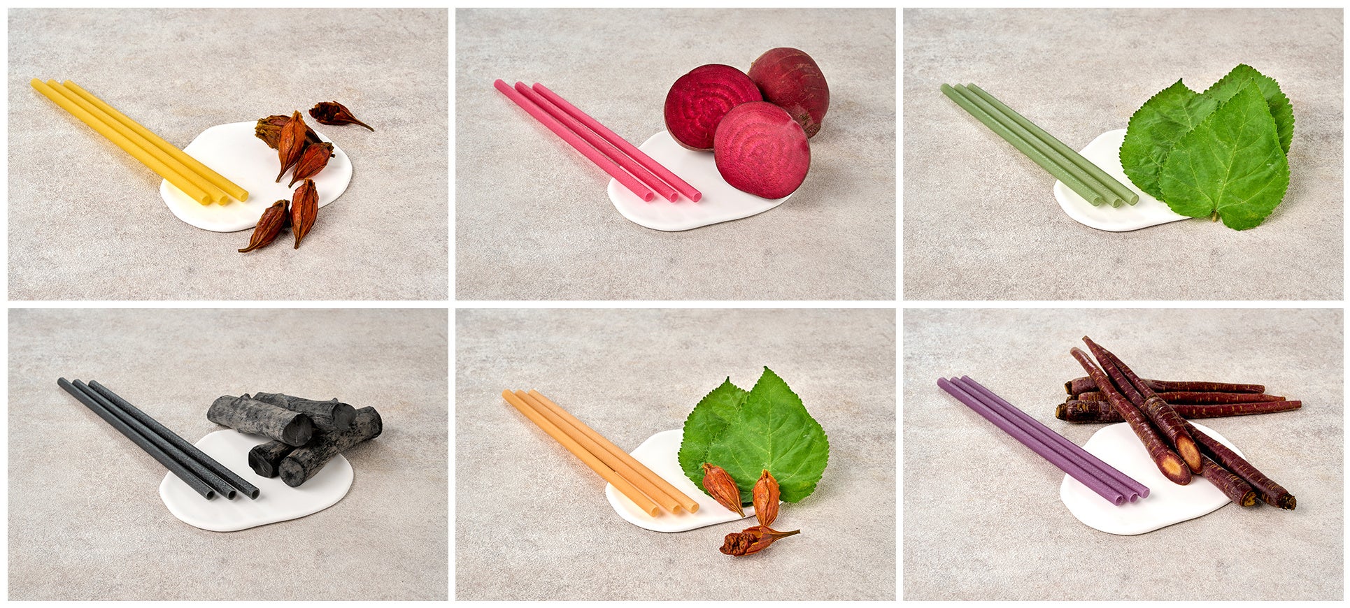 「RICE STRAW」の主原料は、製造元のマレーシアで規格外のために一般出荷されない廃棄米です。その他の原料はタピオカ粉と水、色をつけるための着色料は、ビーツや黒にんじんなどの天然着色料を使用しています。シンプル製法の完全脱プラで、100%自然由来にこだわっています。