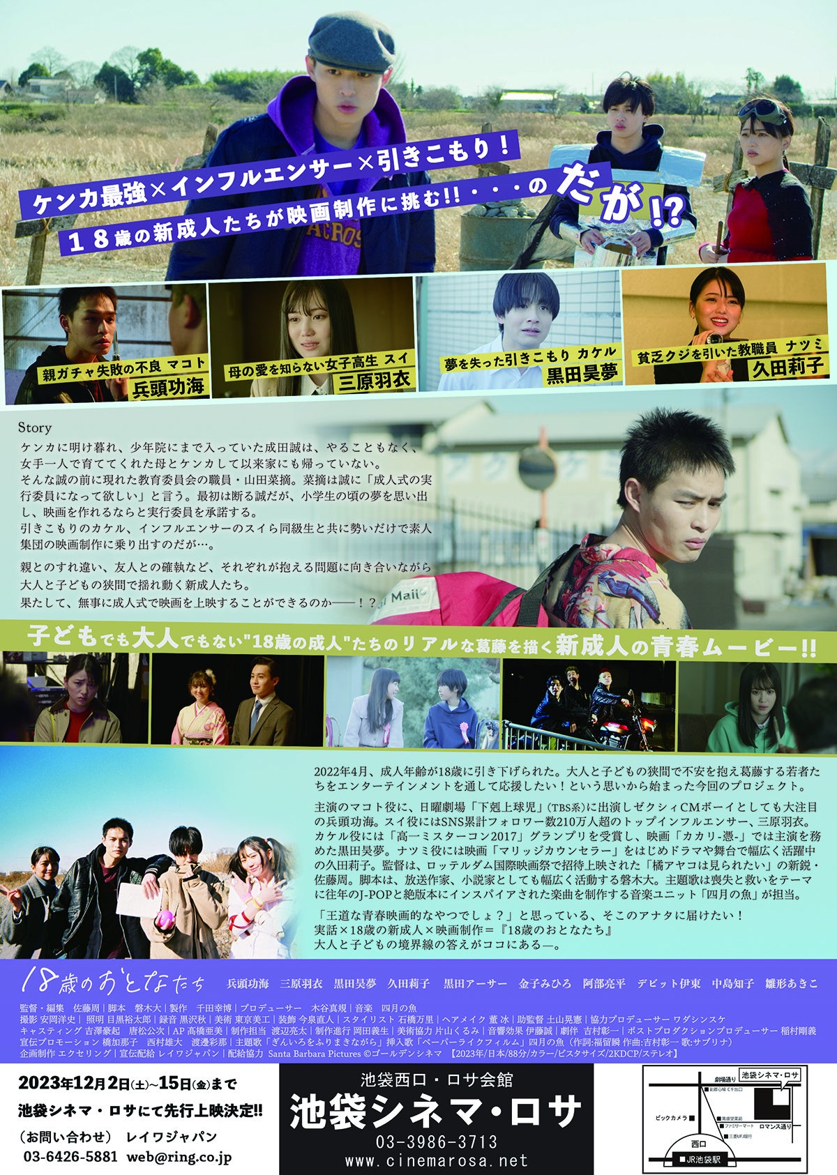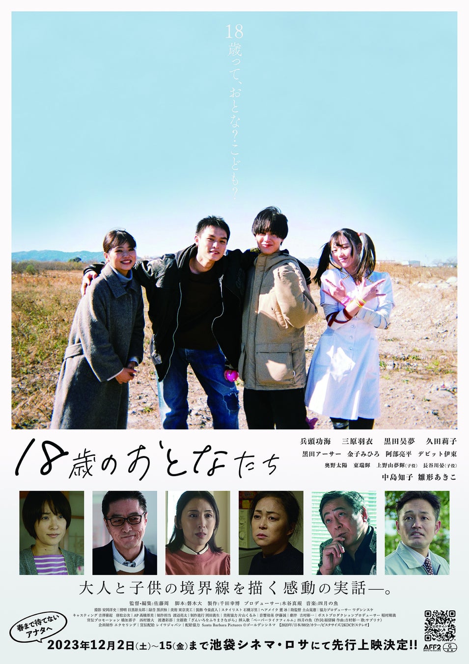 マリブ コーポレーション(本社:神奈川県横浜市、代表取締役社長:山口和浩)の映画配給事業部門の《サンタバーバラ・ピクチャーズ》初受託配給作品が『18歳のおとなたち』に決定いたしました事をお知らせ申し上げます。本作は、2024年春の公開に先駆け、2023年12月2日(土)より池袋シネマ・ロサにて先行上映が決定しております。