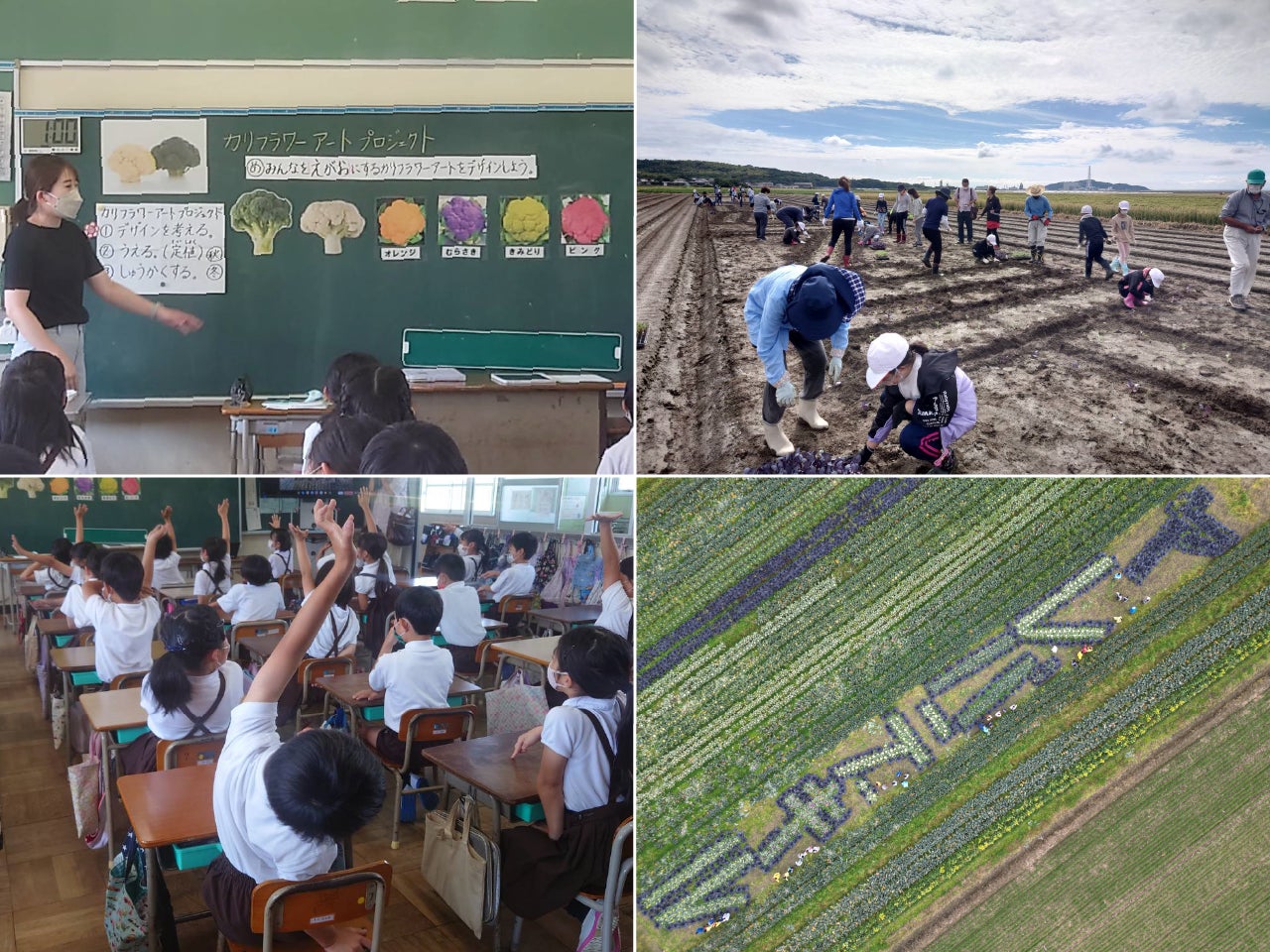 ただ畑に行って見てみるではなく、実際に苗を植えて育て食べてみて初めて”食育”や”農業体験”になると考えています。 私たちは、山口県山陽小野田市の高泊小学校と協力して、野菜で文字を作る”野菜アート”を4年に渡り実施しております。今後はAgleaf ZEROの野菜加工施設の見学や、実際に食べてもらうことを予定しています。
