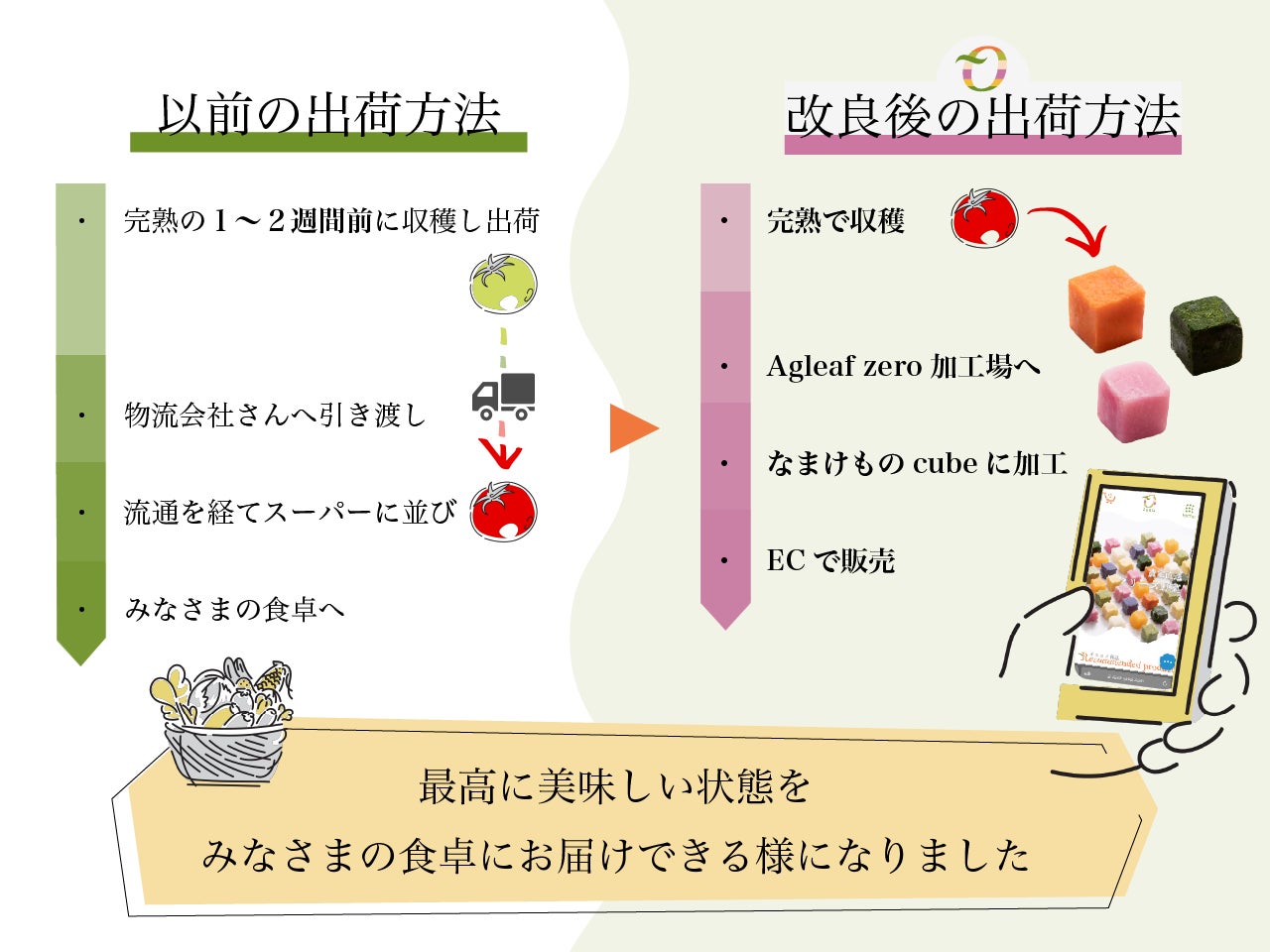 実は、『なまけものcube』の商品開発はそんな、完熟野菜・果物を食べてほしいという思いからスタートしています。