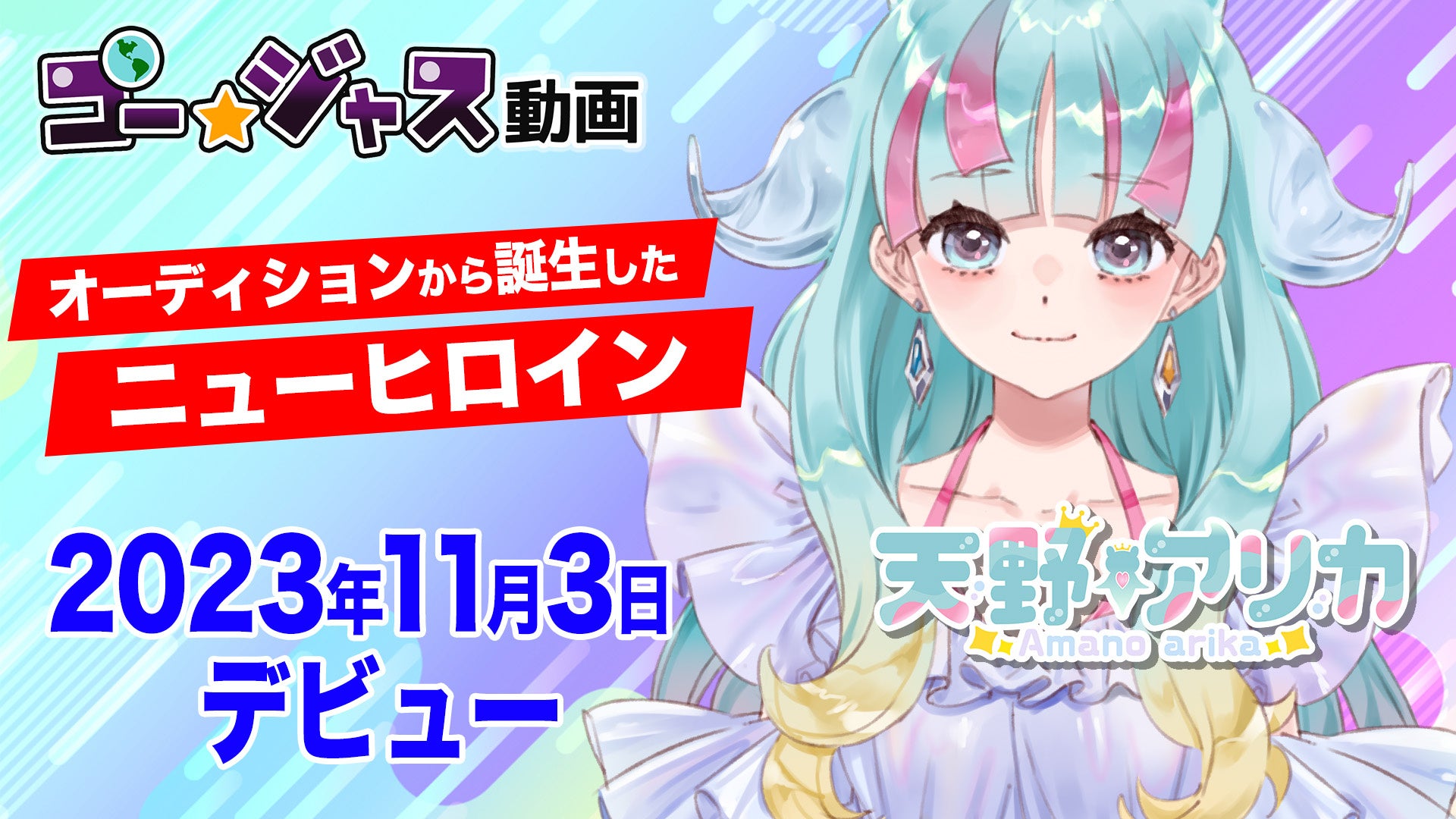 2022年2月に告知されたゴー☆ジャス動画(ナオ株式会社運営)の「バーチャルオペレーターオーディション」に合格したVtuber「天野アリカ」が、11月3日(金・祝)にデビュー生配信を行うことを10月27日(金)にゴー☆ジャス動画にて発表いたしました。