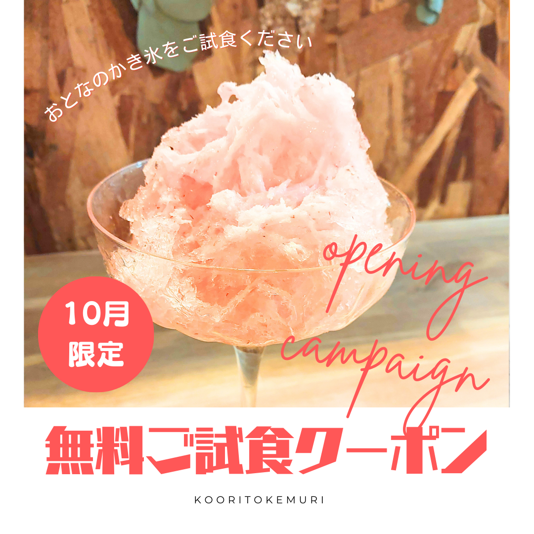 氷煙では10月末までオープニングキャンペーンとして、LINE公式アカウントのお友達追加いただくと「おとなのかき氷」をご試食いただける無料クーポンを配布しております。