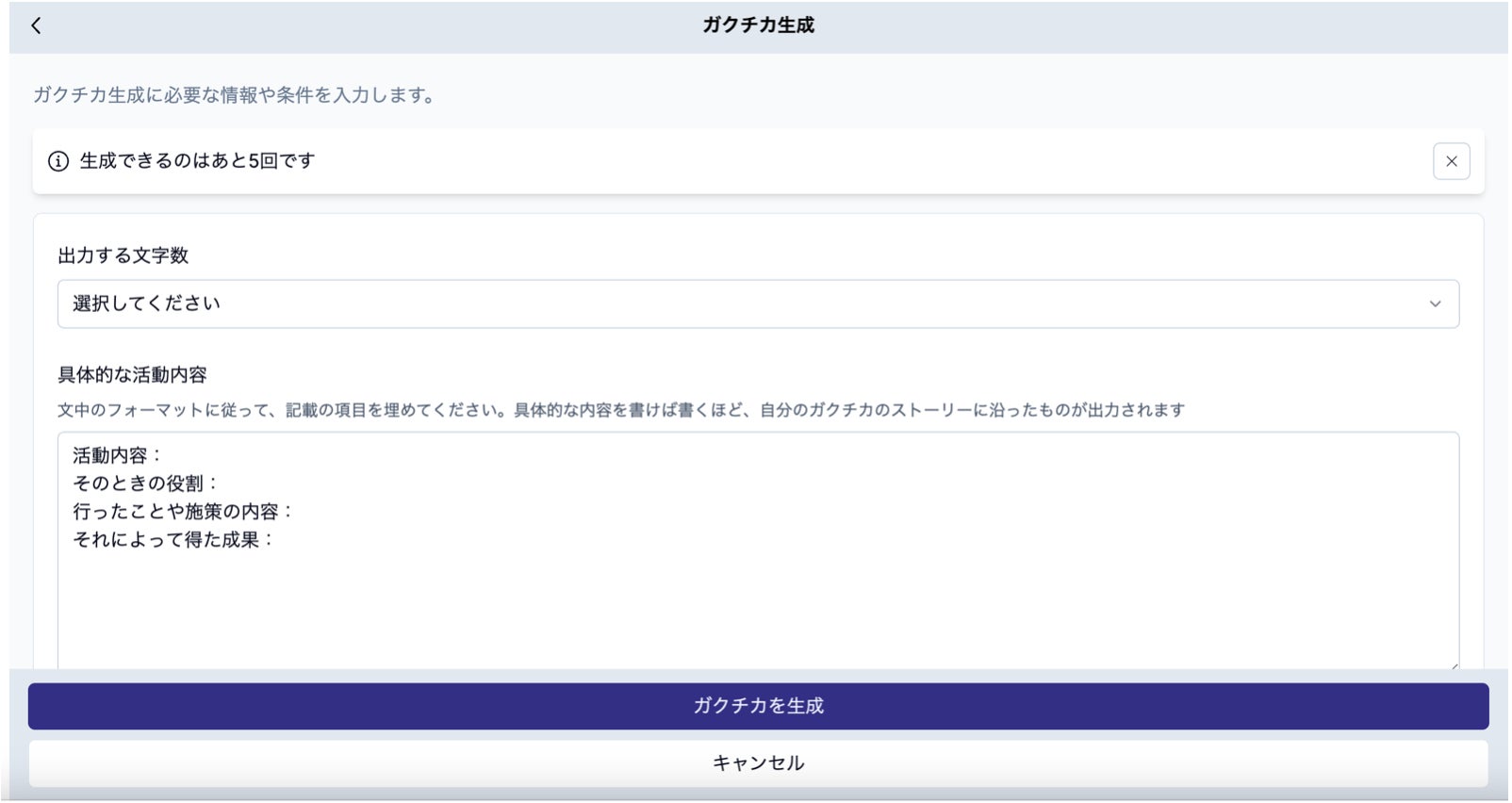 ※「ガクチカ添削」「過去の生成履歴」は準備ができ次第実装予定。