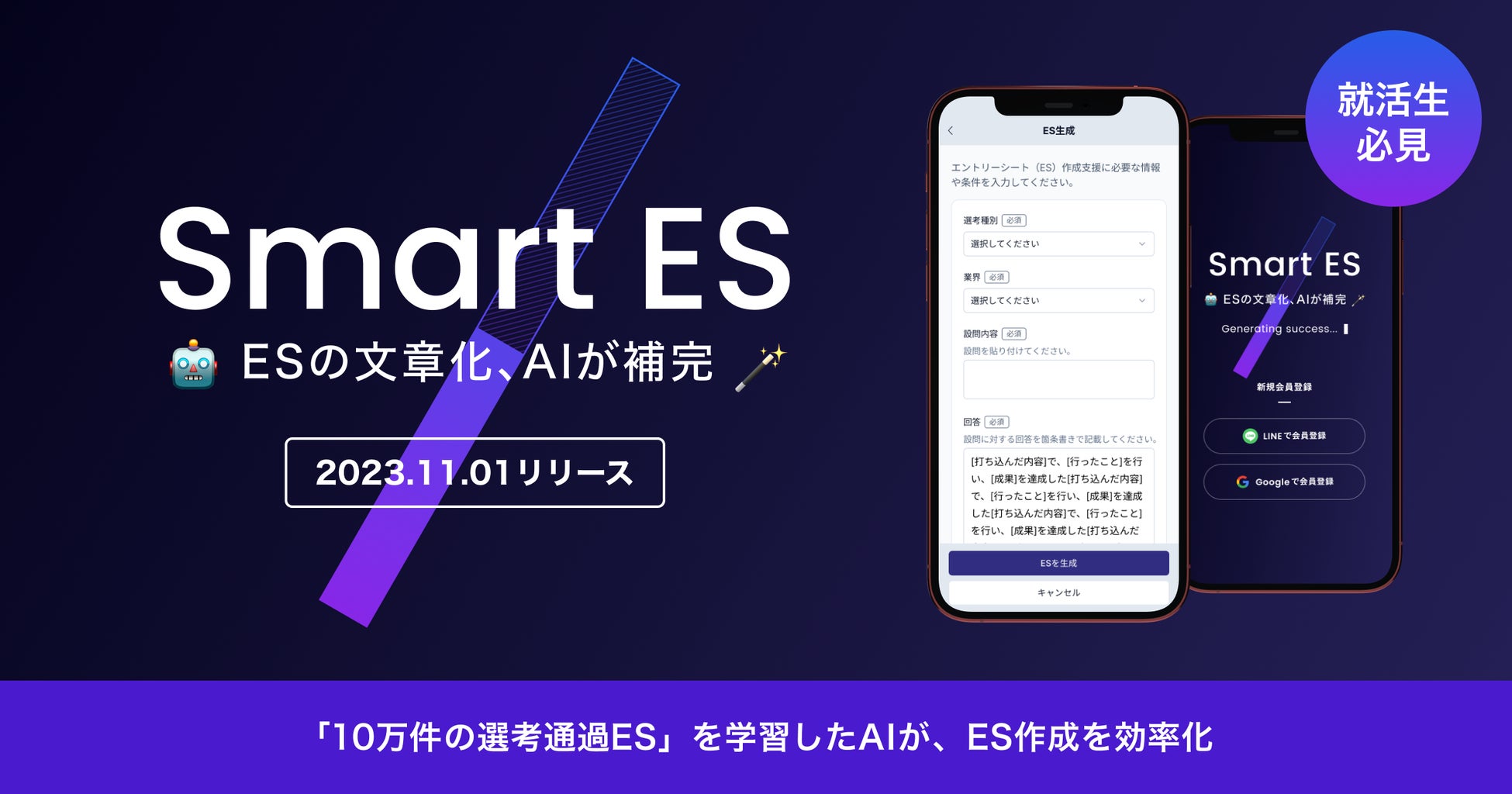 【就活生必見】AIによるES作成補助サービス『SmartES』提供開始