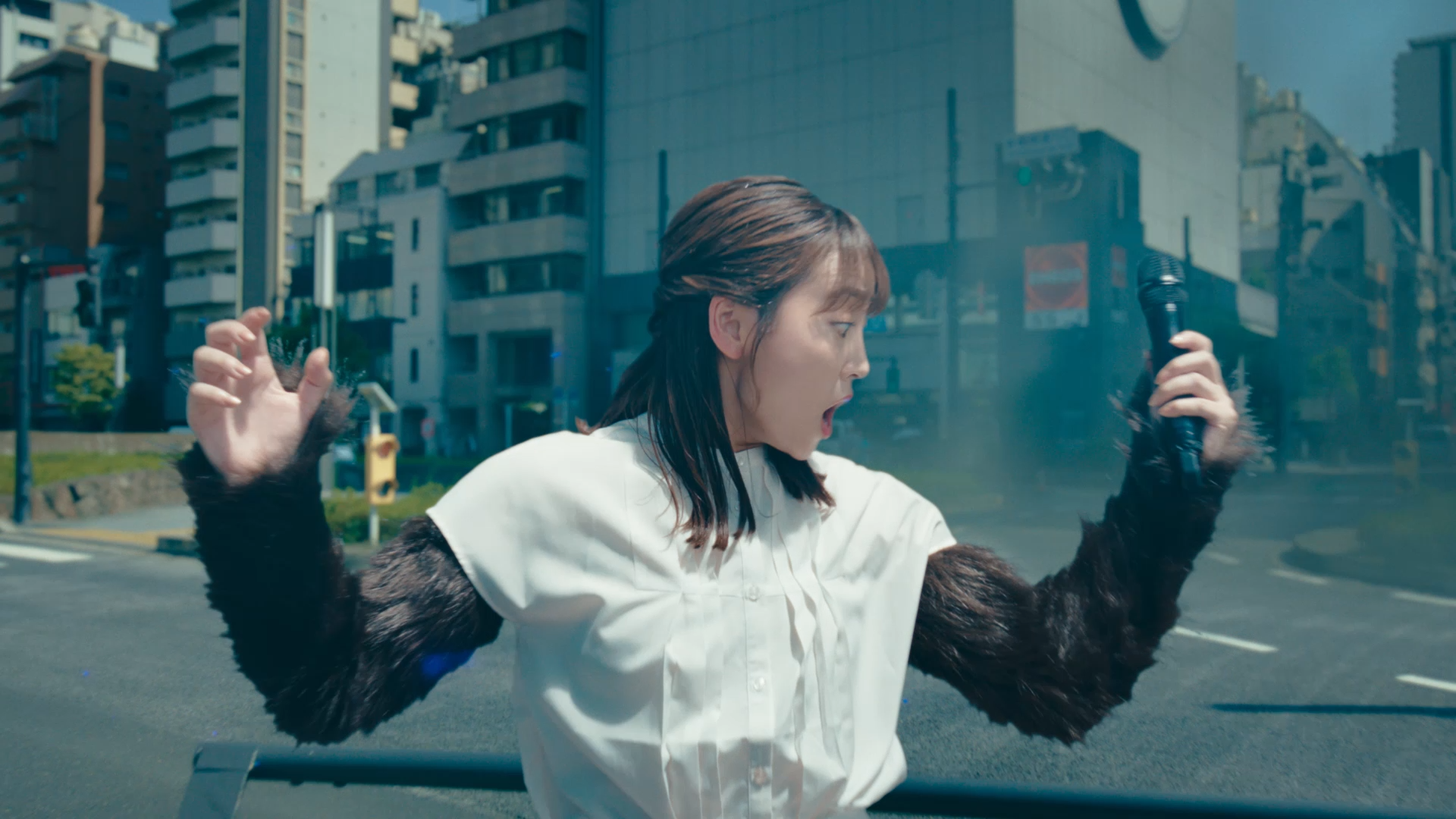 新WEB CMは、街中に突如飛行物体が現れるところから始まります。飛行物体に乗っているのは宇宙人「ボーボー」。「ボーボー」が飛行物体の中のボタンを押すと、地上に向かってレーザーのような光が放たれ、打たれた人は毛が“ボーボー”に!“ボーボー”になることを恐れて逃げ行く人たちを救いに来たのは、ピンクのロングヘアとSF風のピンクの戦闘服に身を包んだ山之内すずさん。同じくピンクのオーラを纏うライフル銃で「しかもめっちゃ安いねん~~~~~~!!!」というセリフとともに放たれたビームで、「ボーボー」は消滅し、街の人々に無事すべすべ肌が戻るというストーリーです。