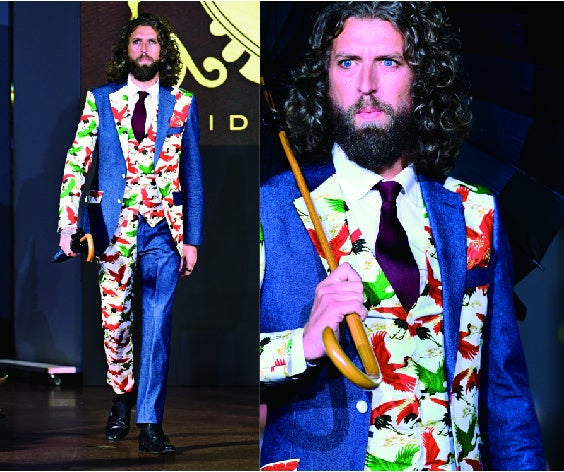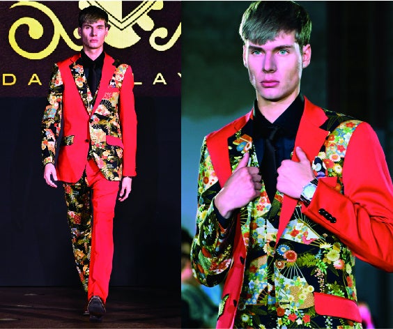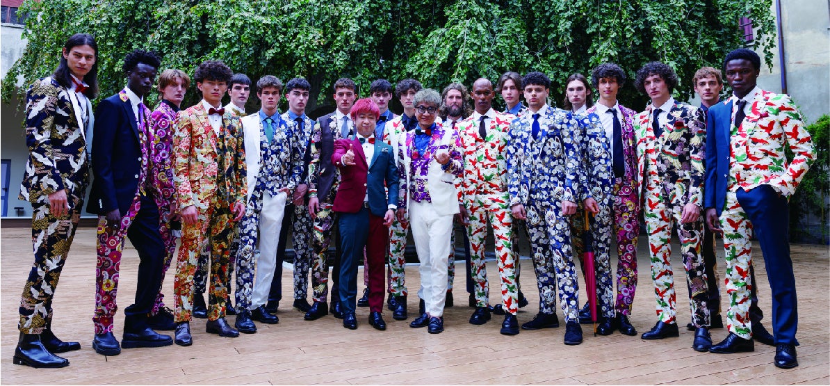 和柄を基調とした新作スーツを披露。イタリアとの融合を大胆に表現し大きなインパクトを与える