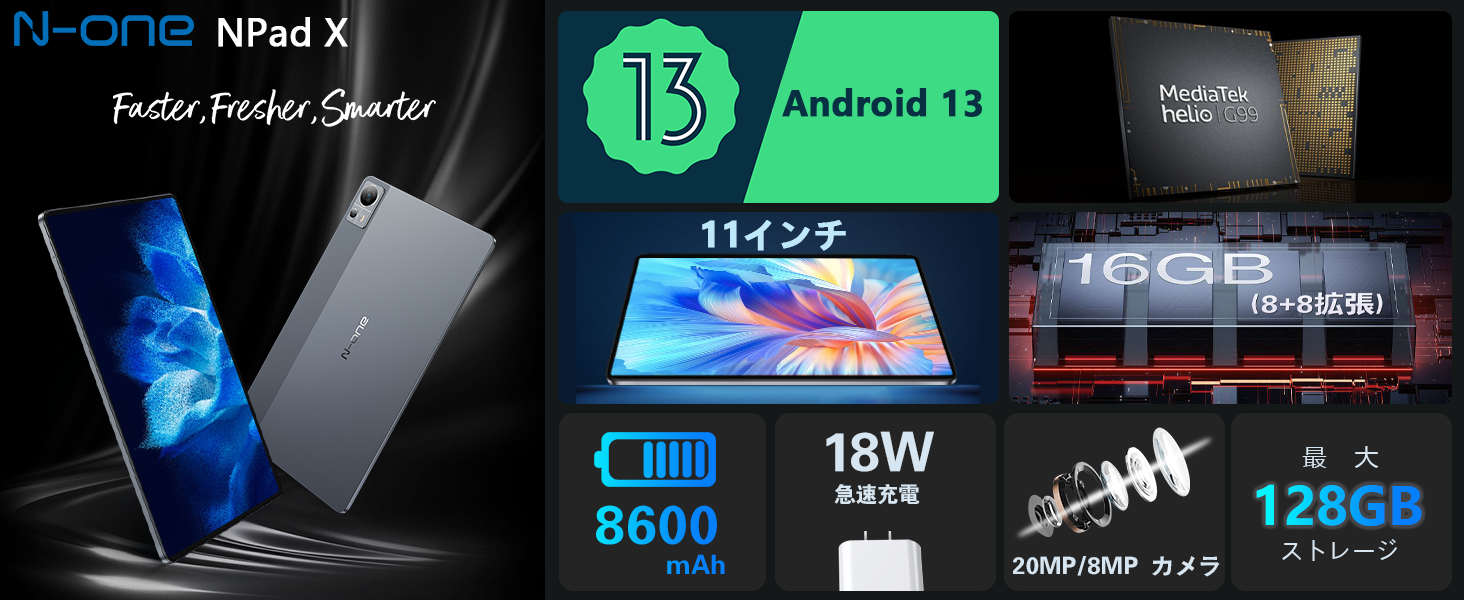 【Amazonで26% OFF】N-One 人気タブレット 「NPad X」限定セール開催中、Helio G99 CPU、16GB+128GB、4g lte 対応,限定25,900!