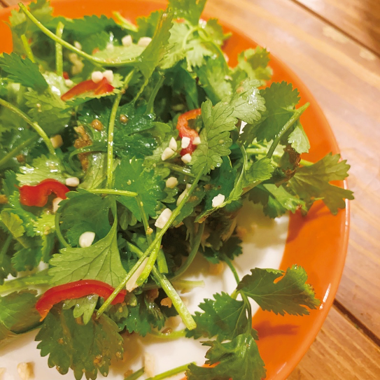 パクチーの美味しさを味わうサラダ。