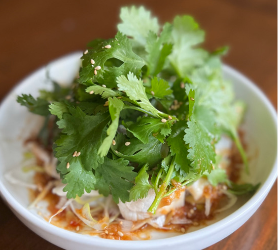 その名の通り、「よだれが出る」ほど美味しいという、中華の四川料理。鶏肉にパクチーを巻いて、花山椒の効いた特製タレを絡めてお召し上がりください。