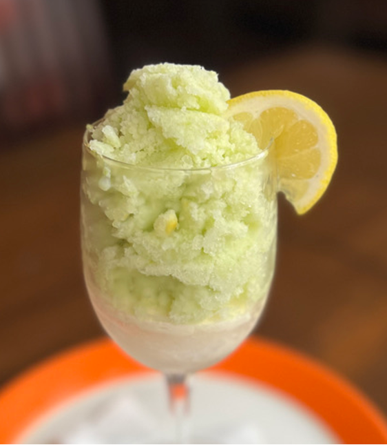 パクチー、ミントの香りと味わいを感じながら、レモンを絞ってスッキリ爽やかなシャーベットです。