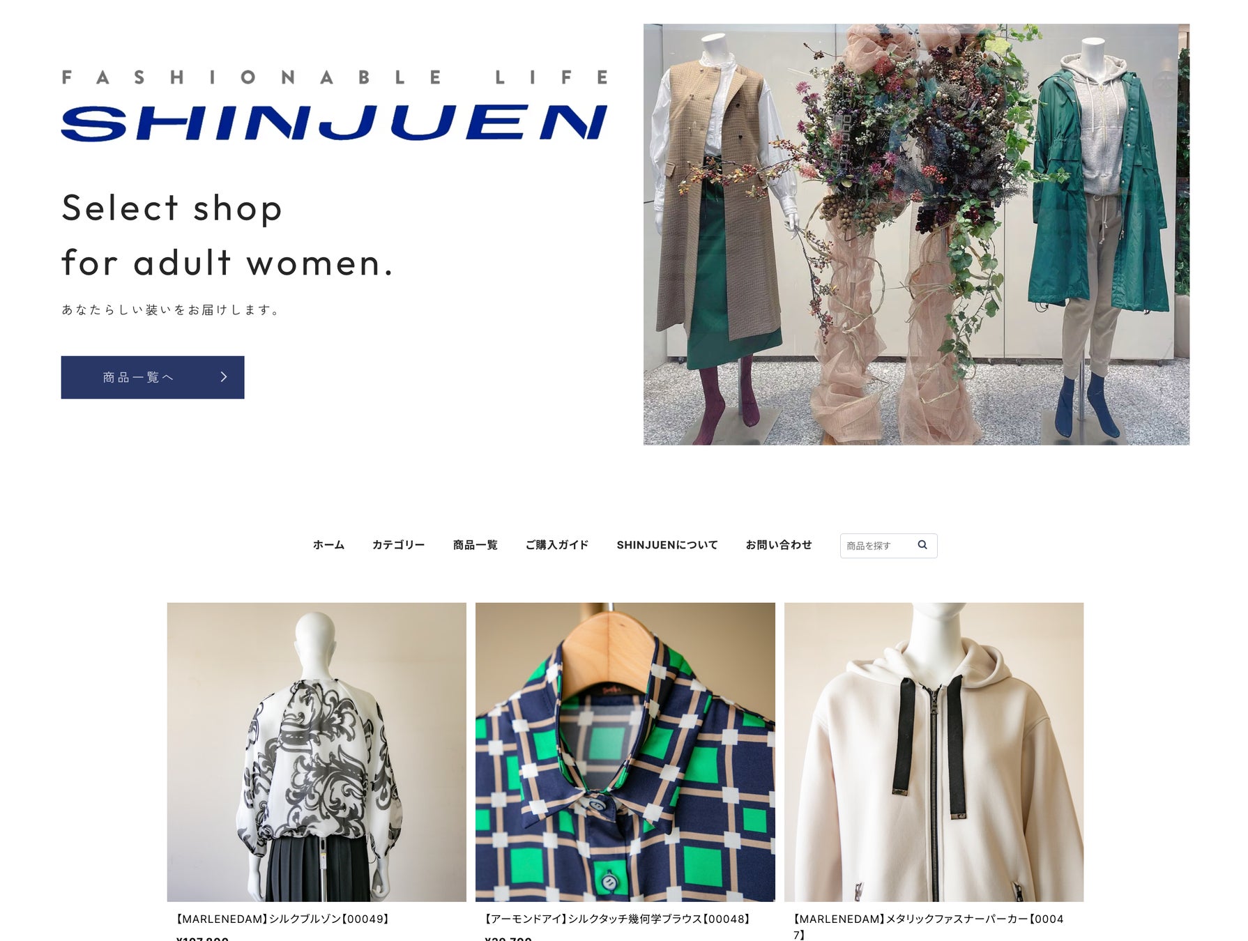 SHINJUENオンラインショップでは、大人女性のライフスタイルに合わせた自分らしい装いをお届けできるよう、さまざまなスタイルやブランドを取り扱っています。サイト開設後もトレンドアイテムを順次追加予定です。