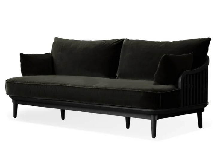 見る角度によって色のトーンが変わるベルベット調で、どんな色彩の部屋にもマッチ。商品名はブライアン・アダムスの楽曲『So Far So Good』にインスパイアされて。「みんな集まり踊り出す」そんなイメージでデザインされたソファは大人のリビングにぴったり。ホームパーティで存在感を出します。