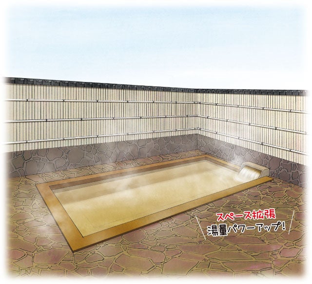 従来の露天風呂の壁を隔てた場所に大きな白湯露天風呂を増設。狭かった男性露天風呂が大幅に拡張し、今まで以上にゆったりと露天風呂をお楽しみいただけます!