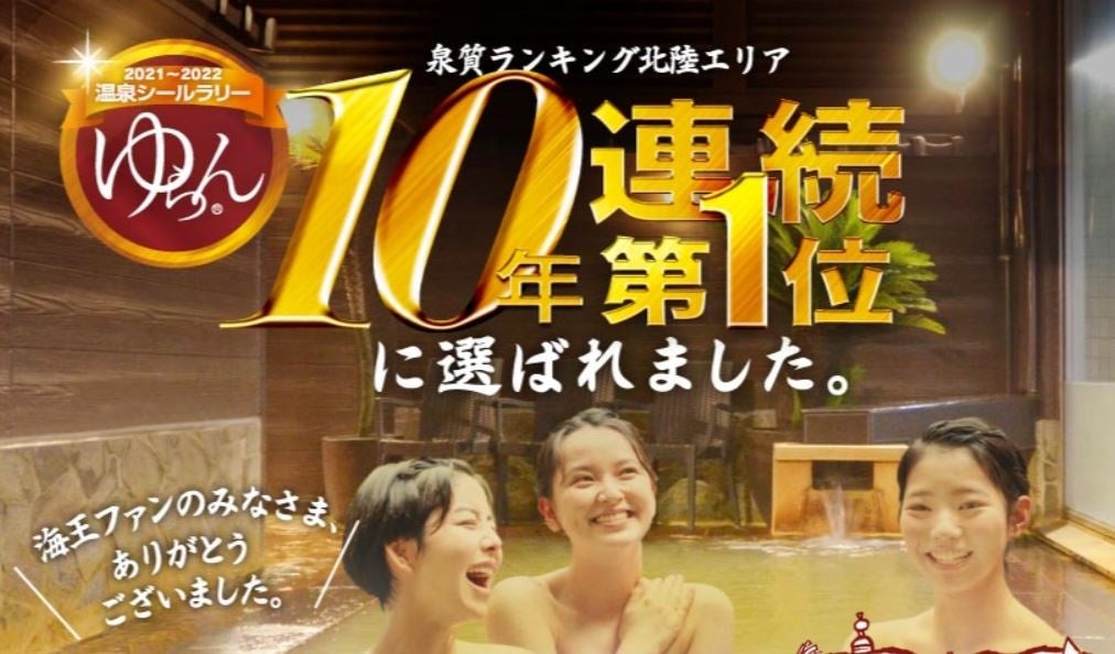 〈ゆらん〉泉質ランキング10年連続北陸エリア第1位の天然温泉。成分が濃い高張性強塩泉を加温・加水なし、源泉100%で提供。さらに営業後には全ての浴槽を毎日清掃し、常に清潔な湯舟の維持にこだわり続けることで富山の皆様はもちろん、全国の温泉マニアの皆様の癒しの場として日々営業しております!