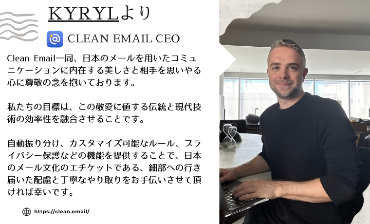 Clean EmailのCEOであるKyrylよりメッセージです。