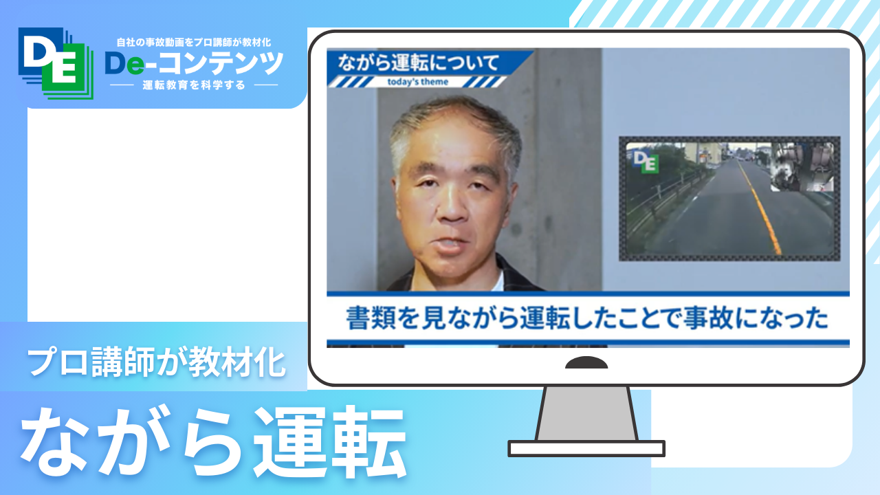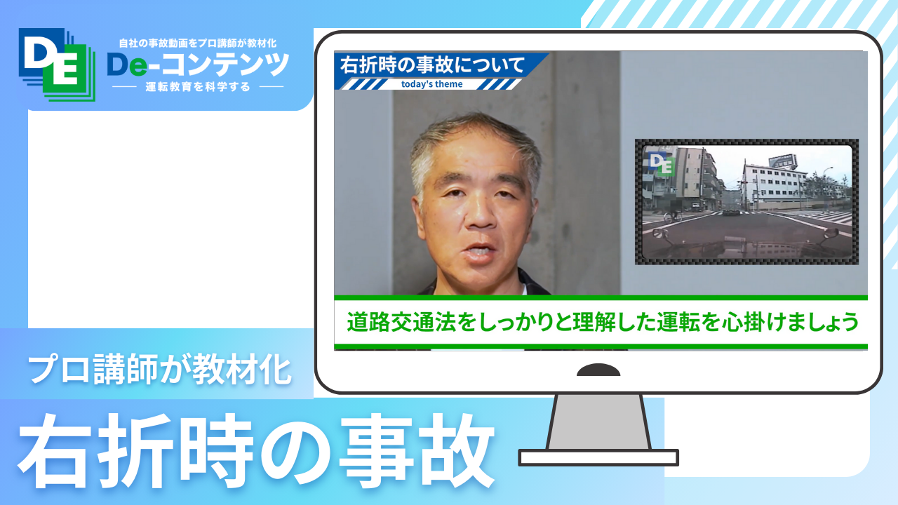 今回ディ・クリエイトが新たに提供を開始した「Deコンテンツ」は、自社(依頼主)のドライブレコーダーの事故映像を教材化してお届けするサービスです。企業から提供されたドライブレコーダーの映像を、交通事故防止コンサルタント・上西一美をはじめとするプロ講師が分析し、事故原因や再発防止策を解説します。