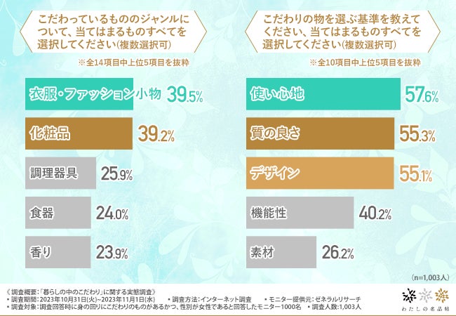 【調査対象】調査回答時に身の回りにこだわりのものがあるかつ、性別が女性であると回答したモニター1,003名