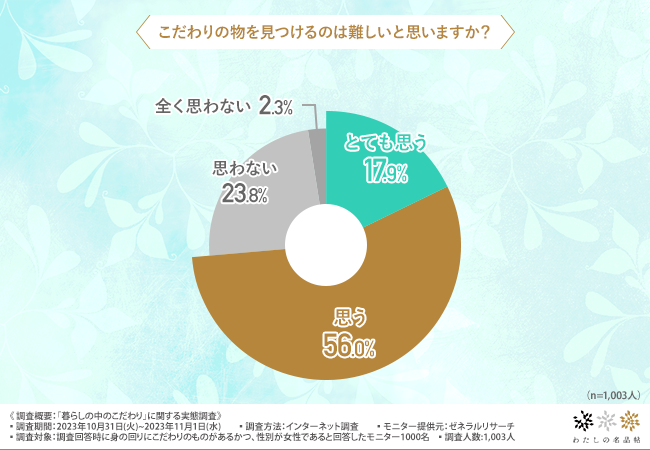 7割以上の方が、自分のこだわりにマッチした物を見つけるのは難しいと感じていることが明らかになりました。