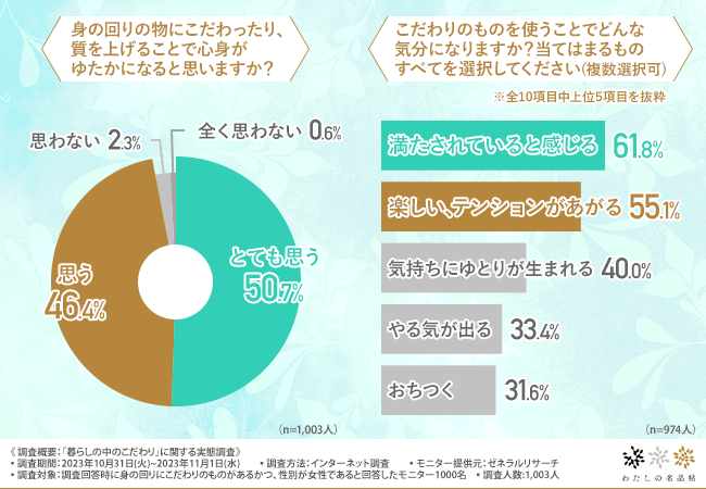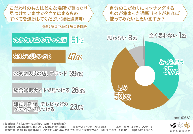 【暮らしのこだわりに関する調査】97%が身の回りの物にこだわることで心身が豊かになると回答 こだわりの物を見つけるのは「たまたま立ち寄った店」「SNS」